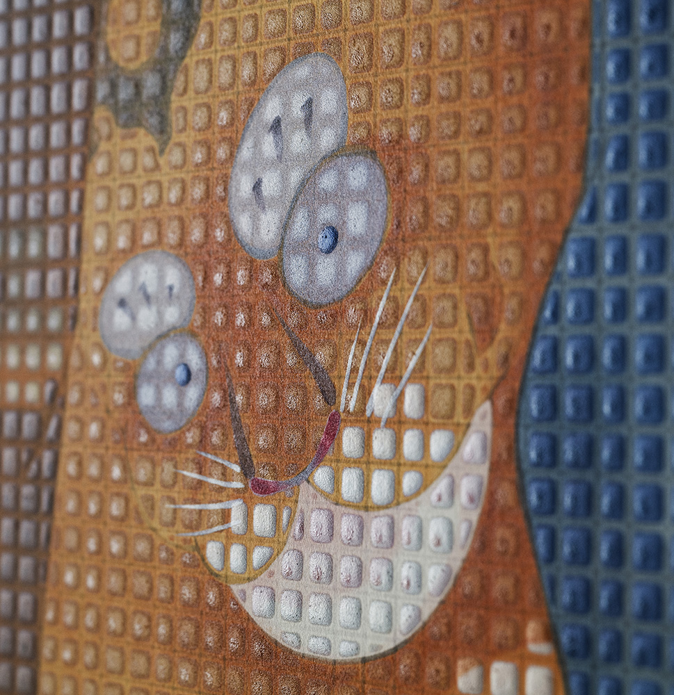 本イベントでご鑑賞いただくのは、なんと、焼失した可能性が高いと考えられる伊藤若冲の幻の大作「釈迦十六羅漢図屏風」! 残された白黒の図版をもとに、12万の枡から構成される枡目描きの大作を復元。子細な学術的調査と監修により、色や図像を推定し、特殊な印刷技法を用いることで、従来の複製絵画などでは難しかった立体的な表現まで再現し制作したといいます。