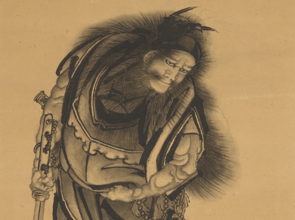 20~35歳ごろまでの春郎期に北斎は、赤の顔料を用いた鐘馗図(赤鐘馗)をいくつも描いていた。そして亡くなる間際には、黒一色の鐘馗を完成。普通、直線を描くことすら難しい年齢で、この力強さはありえない。『黒鐘馗』(部分) 葛飾北斎 1849年 メトロポリタン美術館 The Metropolitan Museum of Art, Charles Stewart Smith Collection, Gift of Mrs. Charles Stewart Smith, CharlesStewart Smith Jr., and Howard Caswell Smith, in memory of Charles Stewart Smith, 1914