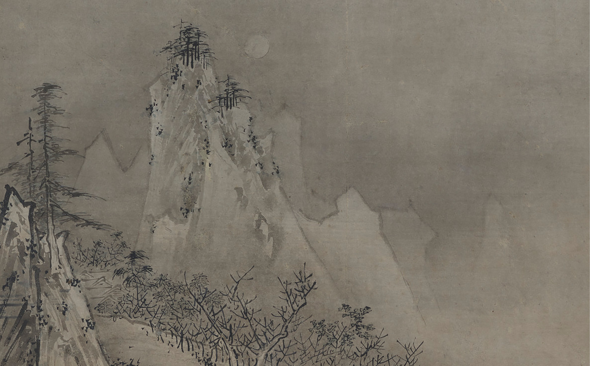 ちなみに、なにも描かれていない、白いままで残された部分を指すときに、「余白」という言葉がよく使われますが、「余白」は、おそらく近代にできた新しい言葉といわれます。そして厳密にいえば、水墨画に「余白」はありません。和紙の白色を生かして、ご覧の絵のように雪や月、雲や霧、あるいは定義できない空間を表しているのであり、「なにも描かれていない部分」はないのです。