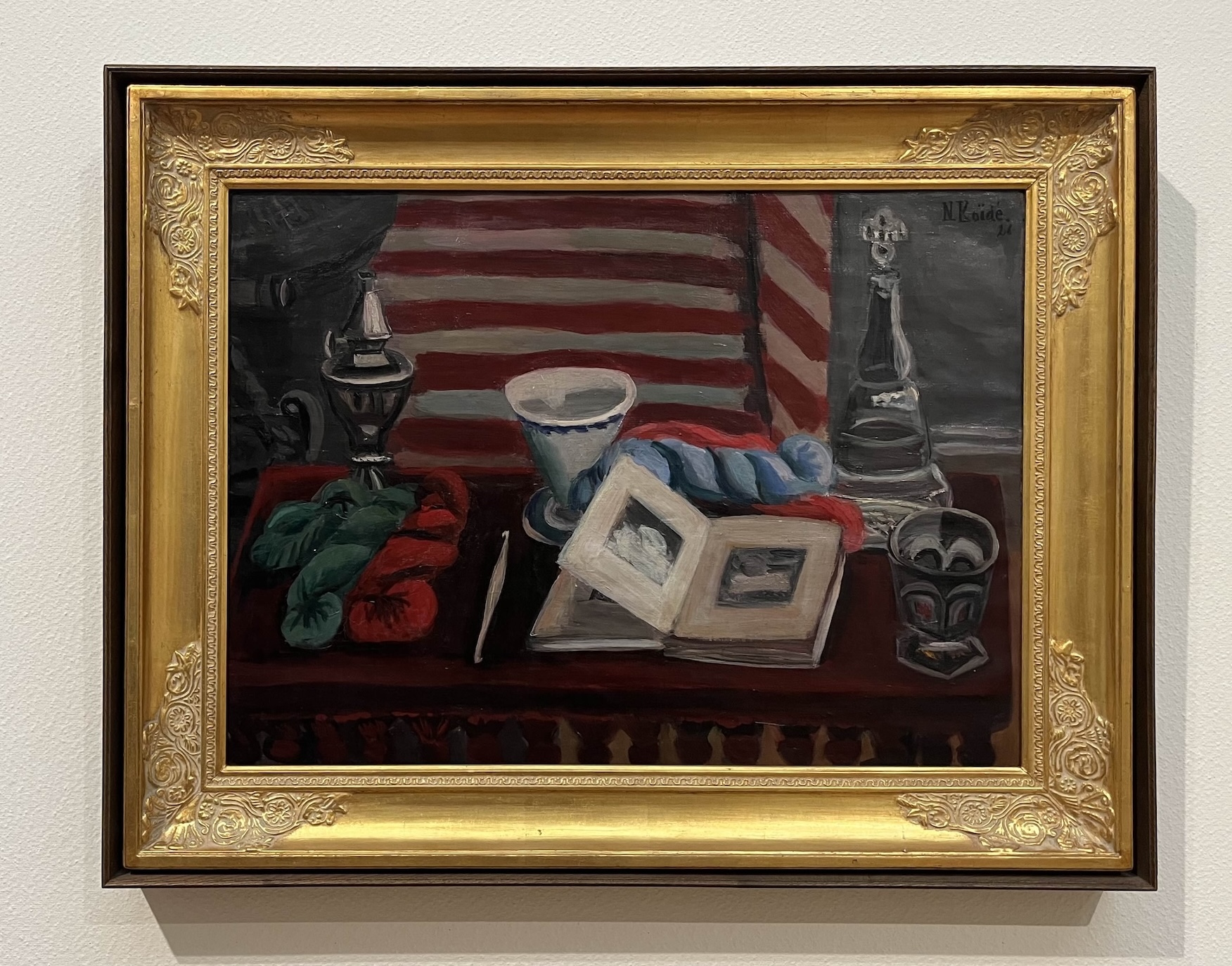 また、こちらの静物画は、うねうねした変わったものが乗っかっているなと思ってよく見たところ、それらは「毛糸の束」でした。楢重さん、やはり視点が面白いなぁ。