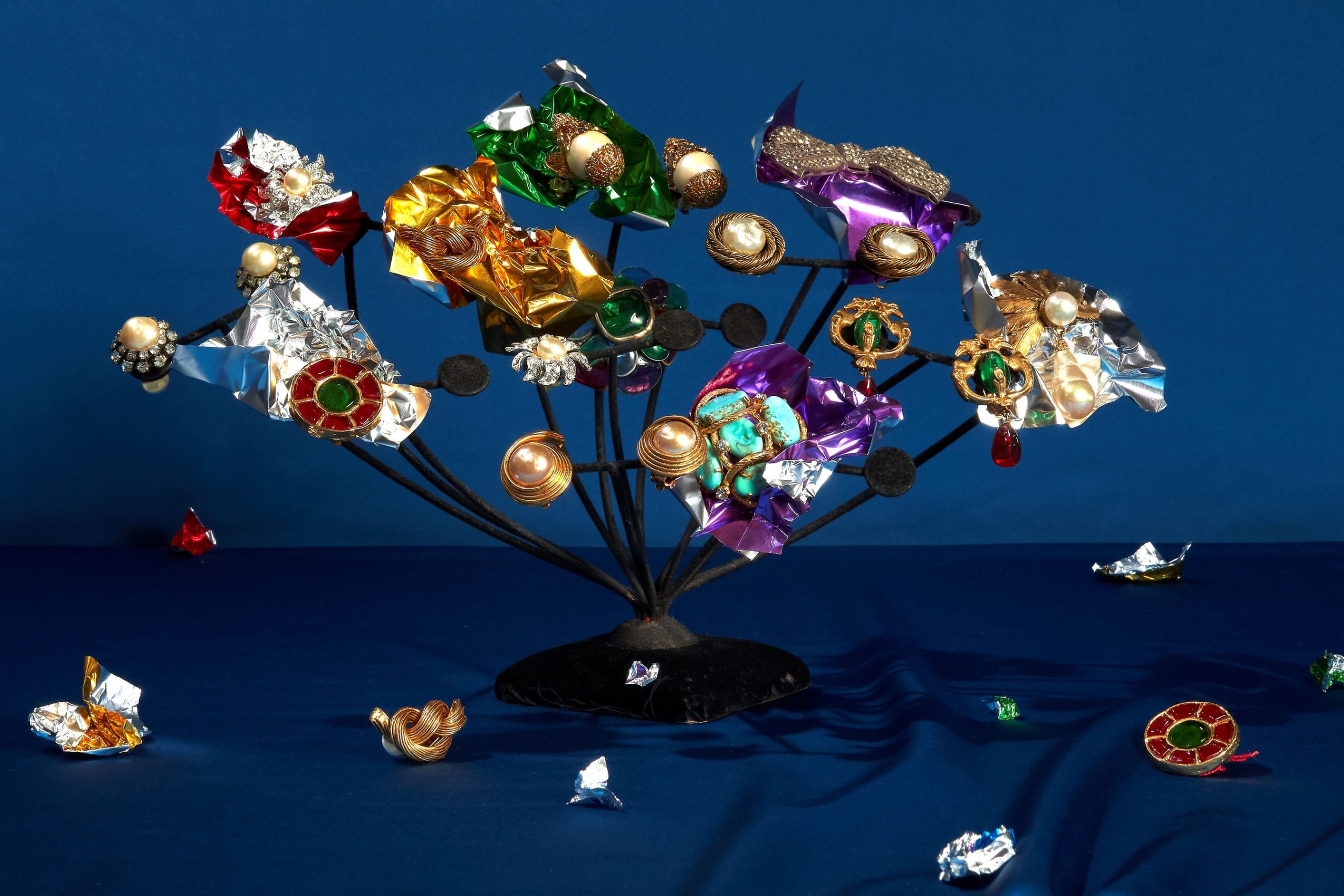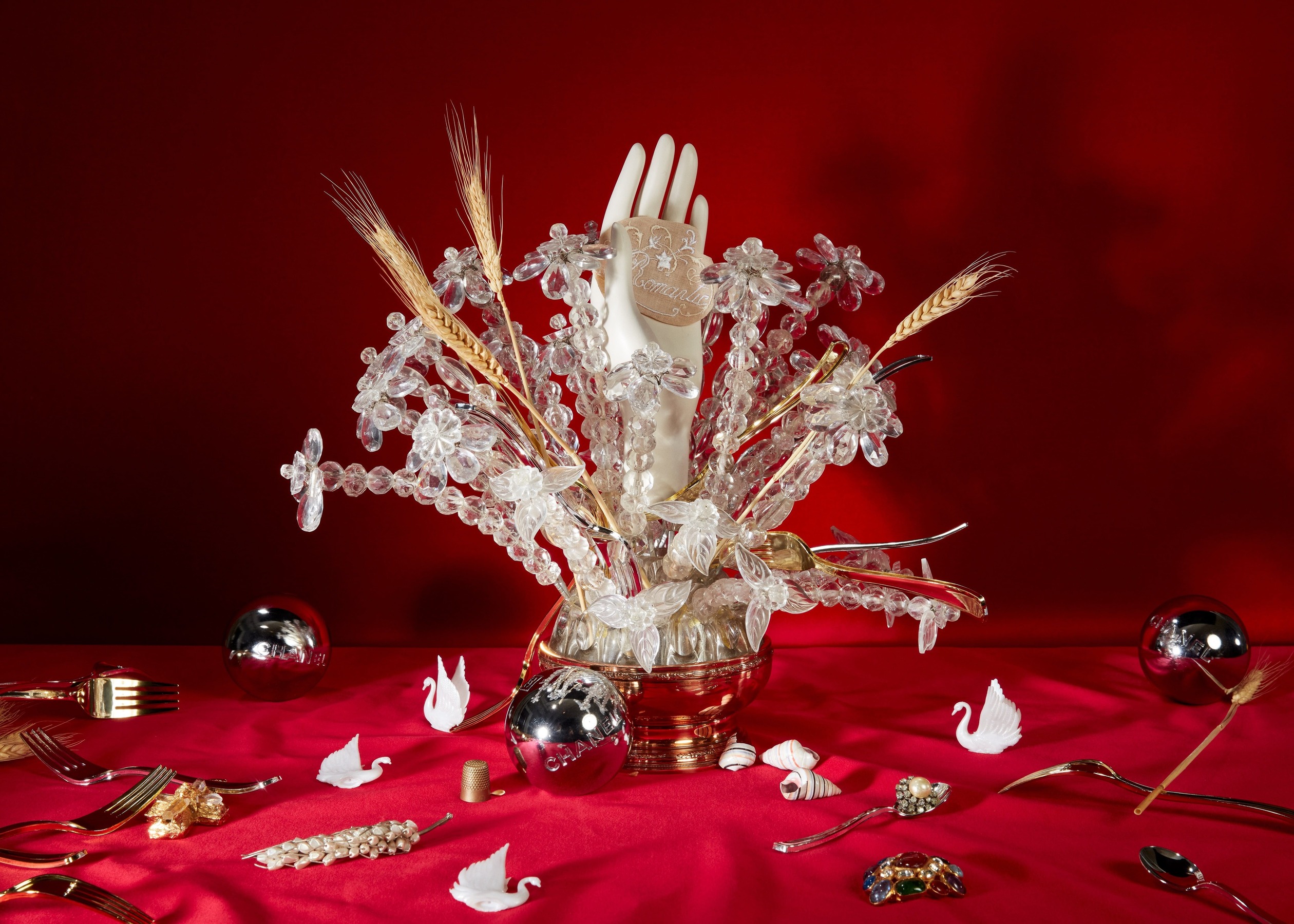 シャネルは豊穣と幸運の象徴である麦の穂モチーフを愛していました。そのブローチをクリスタルのフラワーブーケにあしらっているのも印象的。作品一つひとつからメゾンへのオマージュが感じられます。