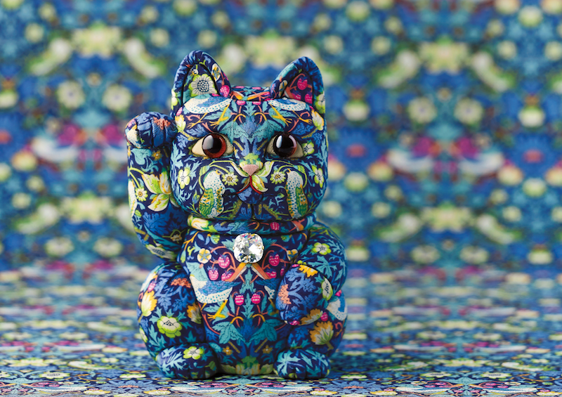 英国伝統リバティ・ファブリックスのテキスタイルとコラボ! ぷっくり愛らしい招き猫