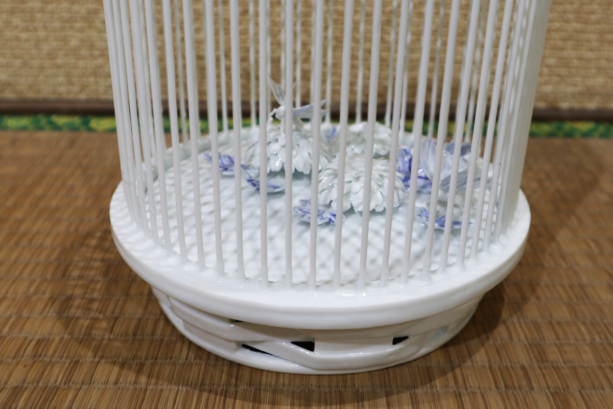 「日本のあちこちに『虫かご』ちゅうタイトルが残ってるんですよ。昔からの三川内焼の逸品に。それはずっと知っとって。ただ、アメリカのボストン美術館で売られてた平戸三川内焼の本に、すごいのが載ってるのを見て。竹ひごを立てた虫かごの原点やったんです。それを見たときに、ああこいつを一回やってやろうと」
