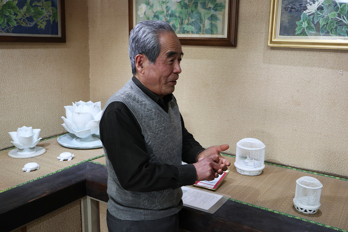 今回は、そんな三川内焼の祖として祀られる「如猿(じょえん)」の子孫で、娘とともに「嘉久房(かくふさ)窯」を担う14代平戸悦山(ひらどえつざん)こと今村均(いまむらひとし)氏を取材した。