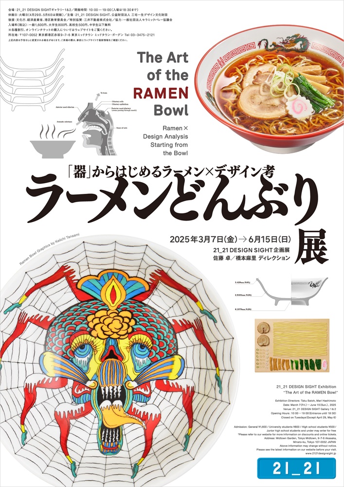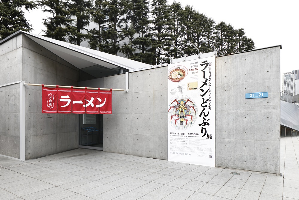 東京ミッドタウンのミッドタウン・ガーデンにある「21_21 DESIGN SIGHT」では、現在企画展『ラーメンどんぶり展』が開催されている。アーティストら40名がデザインしたラーメン丼とレンゲが展示され、ラーメンの歴史や文化を幅広く紐解いてくれている。