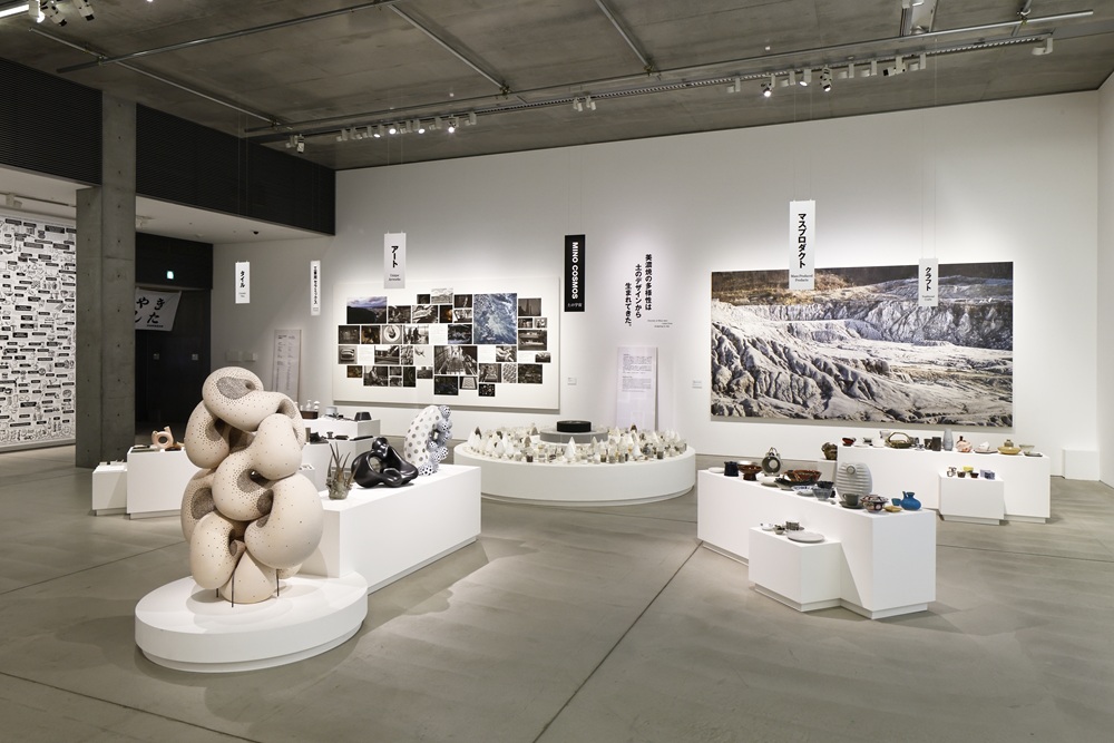 「美濃焼の産地では、90年代からやきもののリサイクルに取り組んでいるのですが、その中でも『セルベン』という使われなくなった陶器を細かく砕いて、粉末状にしたものを粘土に混ぜてもう一度焼くという取り組みがあります。この展覧会の最後の展示として、未来に向けた取り組みを映像などで紹介しているんです」と横川さん。