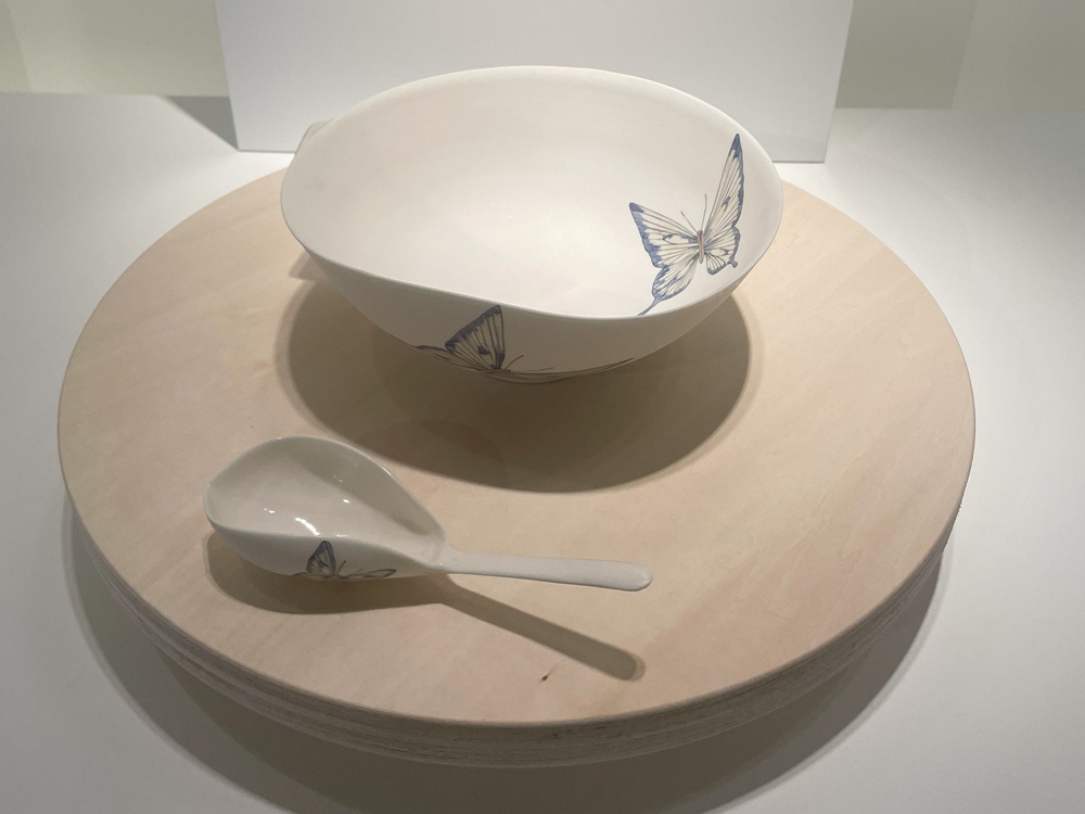 こうした染付の技術の高さも美濃焼ならではといえる。丼だけでなく、陶磁器生産においても、全国で50%以上のシェアを誇る美濃焼は、家庭での普段使いの器の素朴な絵柄から、特殊なデザインの染付まで、長年の大量生産によって培われた多様な技術力がある。今回、様々なアーティストのデザイン画を器に再現するという難しいテーマに取り組めたのも、美濃焼の技術の高さがあってこそだといえる。