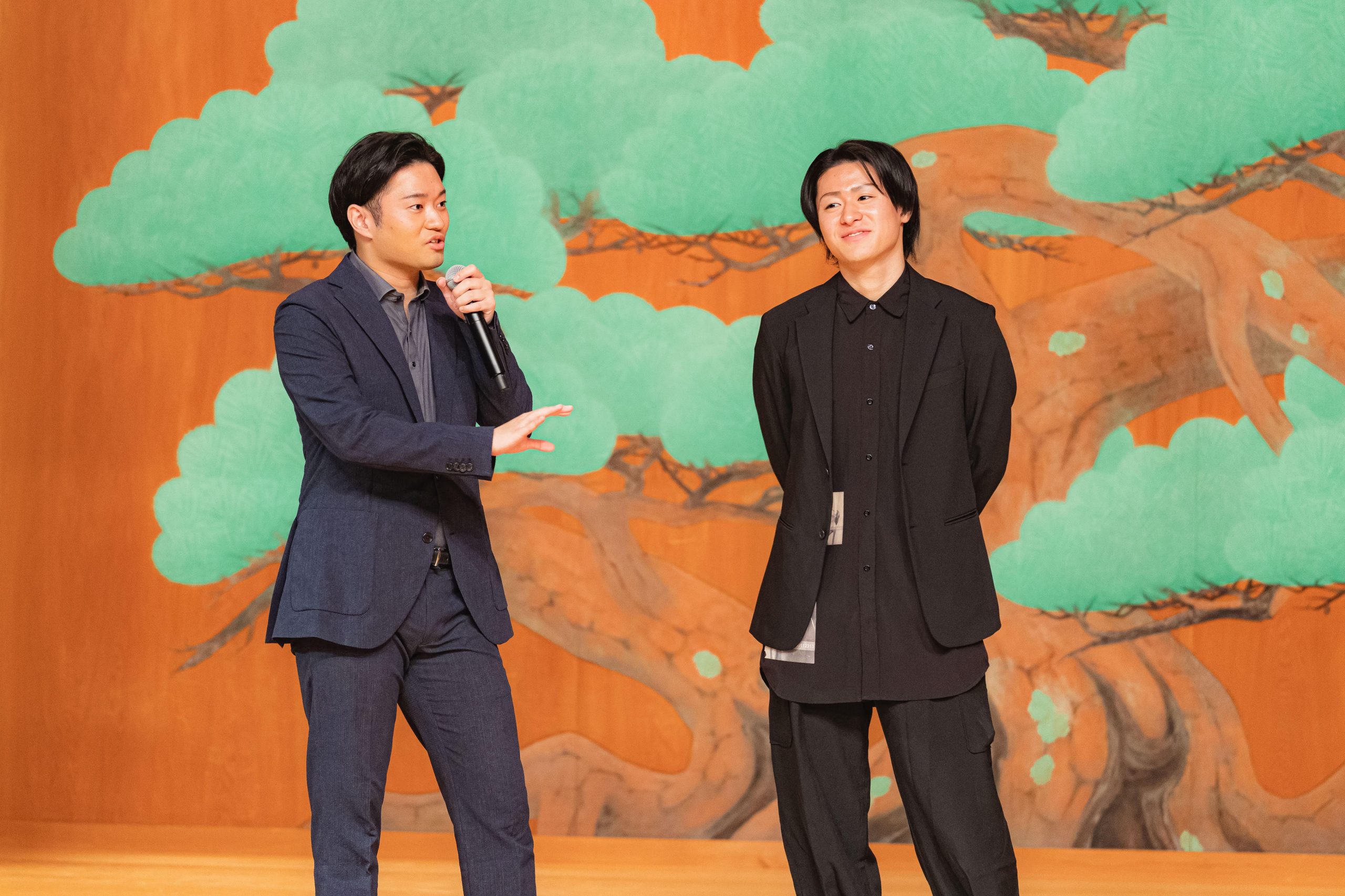 「佐渡国の百姓」が“かましてくるボケ”に、派手にコケて床に体を何度もぶつけていた万之丞さん。三兄弟のユーモアあふれる演技に、会場はほっこりした笑いで包まれました。