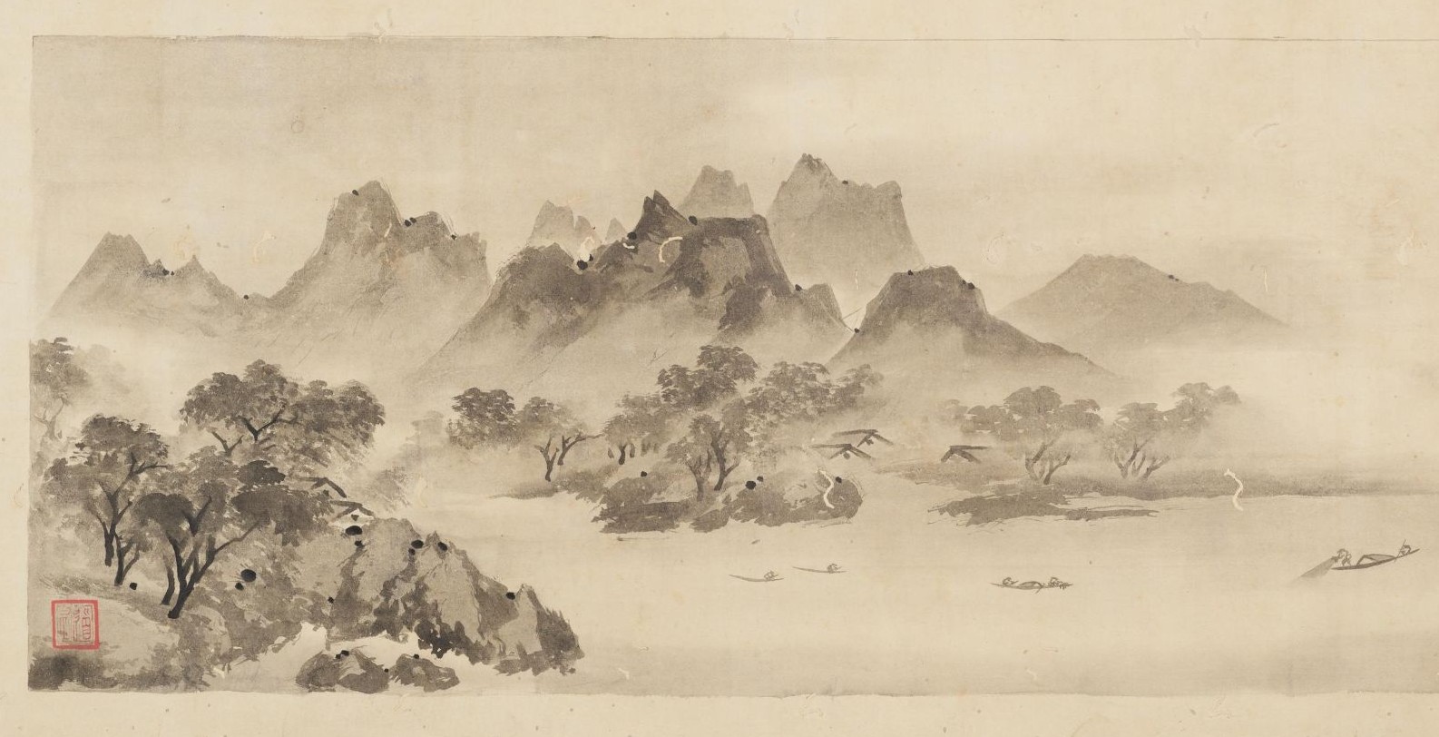 大橋:「潚湘八景図(しょうしょうはっけいず」という、中国風景画をかけた記録があります。中国の有名な水墨画家、玉澗(ぎょくかん)の名品です。