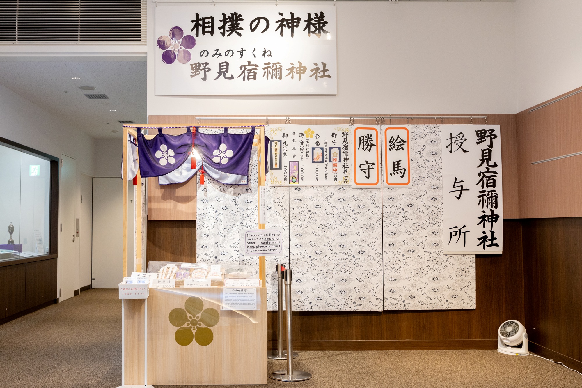 書き手である私も国技館で相撲観戦する際、相撲博物館の企画展は必ず訪れています。コンパクトながらもテーマによっては、力士や相撲の様子を描いた江戸の浮世絵や肉筆画などの珍しい美術品にも触れることができ、相撲にまつわる知識が身につくという、なかなかお値打ちな存在なのです。また相撲の神様・野見宿禰(のみのすくね)神社の授与所もあって人気の力士おみくじや御朱印(こちらは東京場所開催時のみ)、お守りを授与いただけます。相撲好きにも、寺社仏閣巡り好きにもうれしい博物館です。『大相撲100年史』は8月22日まで開催中、もうすぐはじまる名古屋・七月場所にむけて気分を盛り上げるためにまずは相撲博物館へどうぞ。