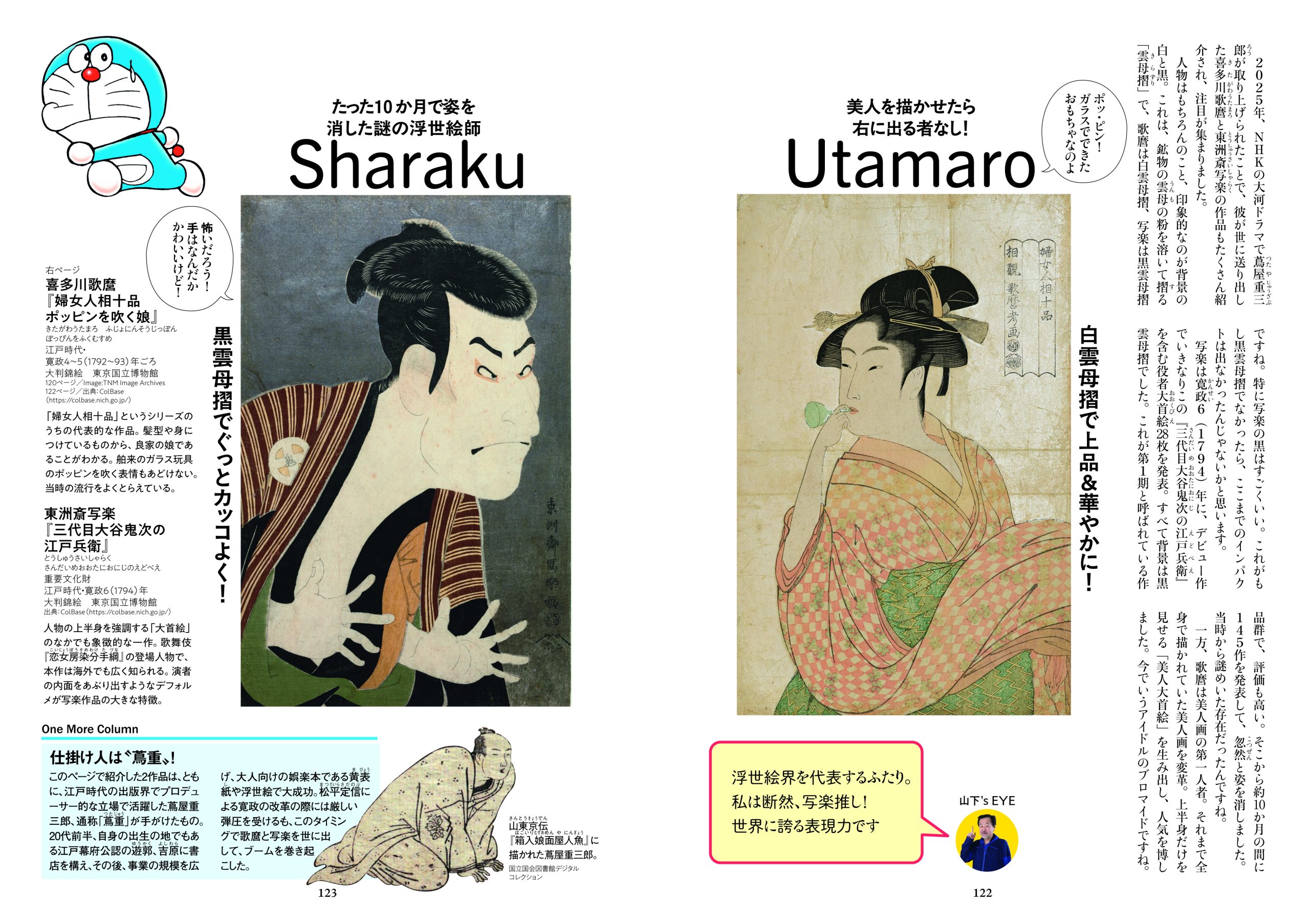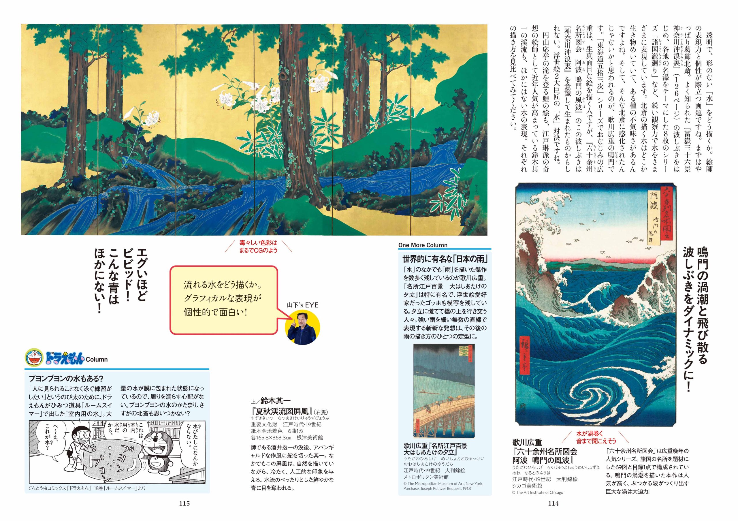 「日本美術は世界でいちばん素晴らしい!」と熱く語る美術史家・山下裕二先生の監修で、ドラえもんと一緒にわかりやすく親しみやすい読みものを、と、本誌2024年4・5月号に「ドラえもんと学ぶ日本美術超入門」第1弾を掲載しました。「縄文」「絵巻」「北斎(ほくさい)と若冲」といった、シンプルなキーワードを立てて、ぜひ知っておきたい作品を紹介し、山下先生がポイントを解説。
