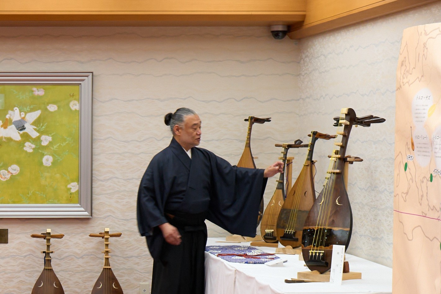 友吉:残されていないものも含めたら、ものすごい数がありますよ。ちょっと面白い敵討ちとか、かっこいいことがあると、全部それを弾き語っていたんです。現在のシンガーソングライターに近いものがありますね。それがだんだん廃れて、古くからある『平家物語』など、悲劇のものだけが何十曲も残ったんです。昔は、おとぎ琵琶っていうのもあって、『ぶんぶく茶釜』や『さるかに合戦』とか、子どもたちの楽しめる琵琶曲っていうのもたくさんありました。