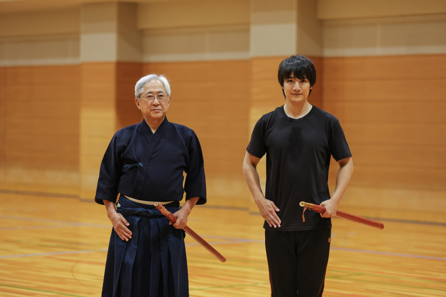 柳生新陰流の第二十二世宗家・柳生耕一さん(右)