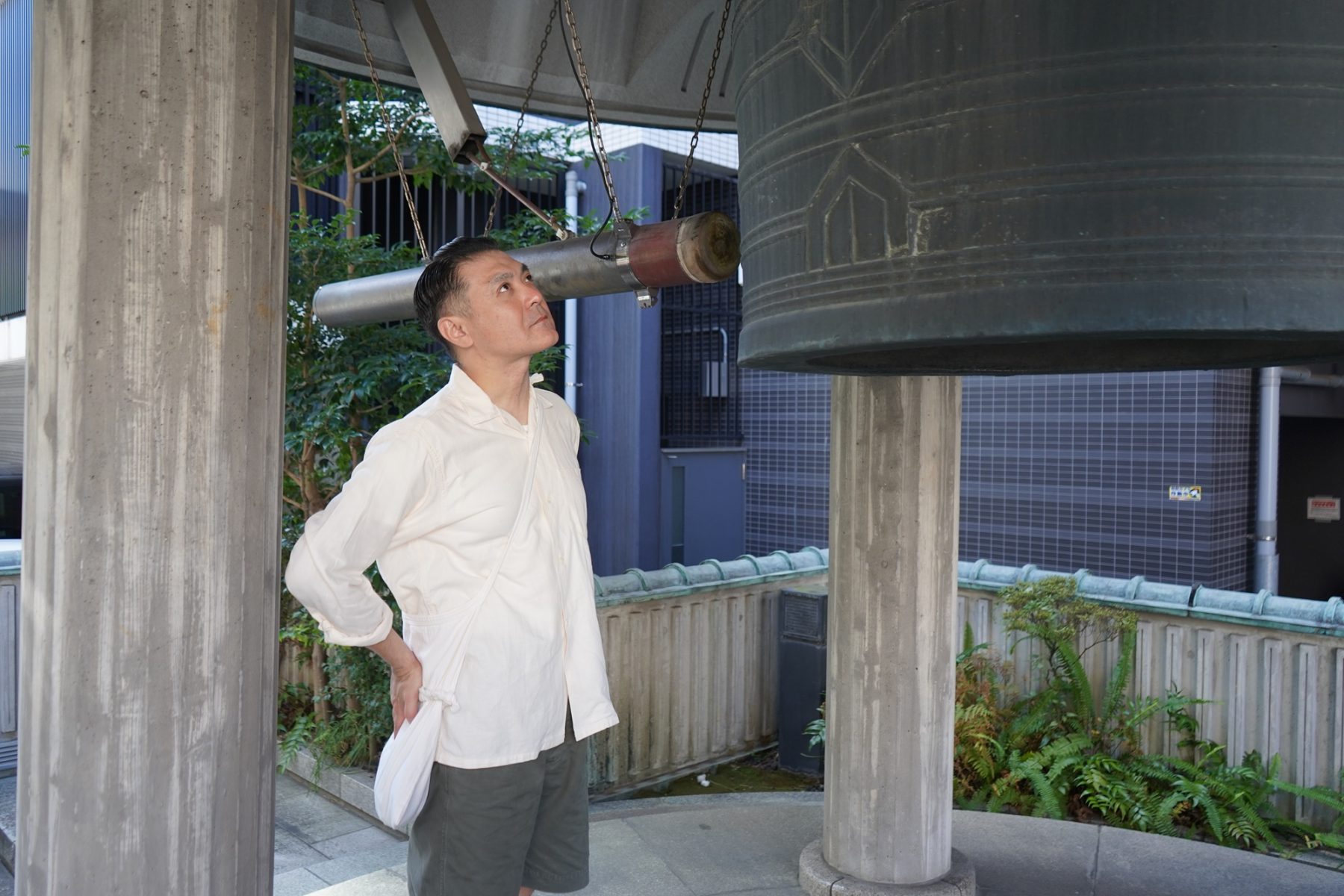 織太夫さんは幼稚園児の頃まで、この鐘からわずか200メートル先の場所に住んでいたそうです。「その時はまだここに鐘はなかった訳ですが、縁を感じますね」