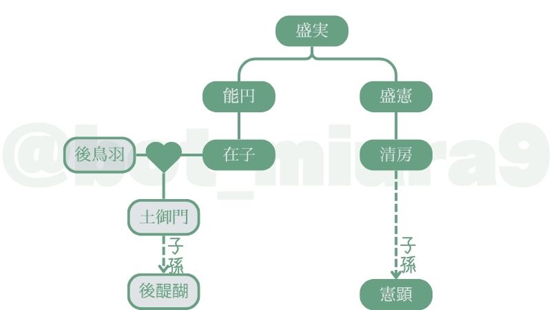 しかし鎌倉時代に入り、盛憲の姪・源在子(みなもとの ありこ / ざいこ)が後鳥羽天皇に入内し、盛憲の息子・清房(きよふさ)は後鳥羽院の側近となったことで再興を果たした。