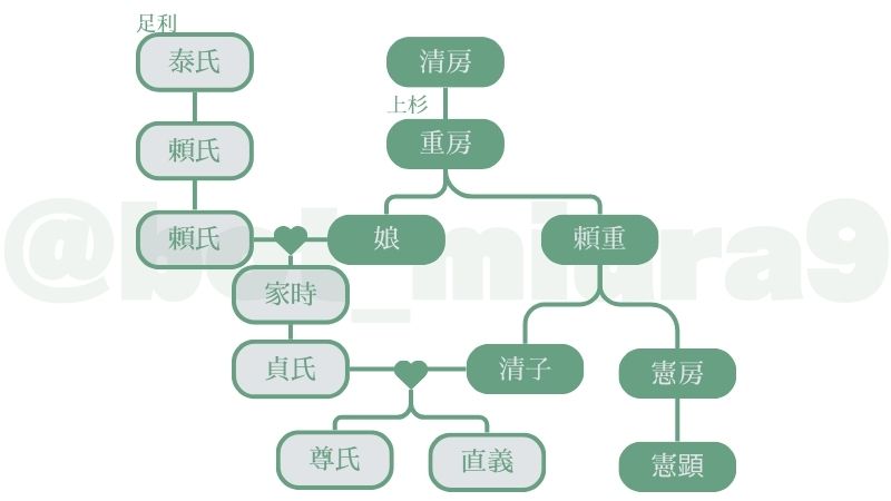 上杉氏は子孫は養子を取って後を継がす、という事をよくやる。まぁそれ自体は珍しいことではないが……家系図がややこしいんだよな……。
