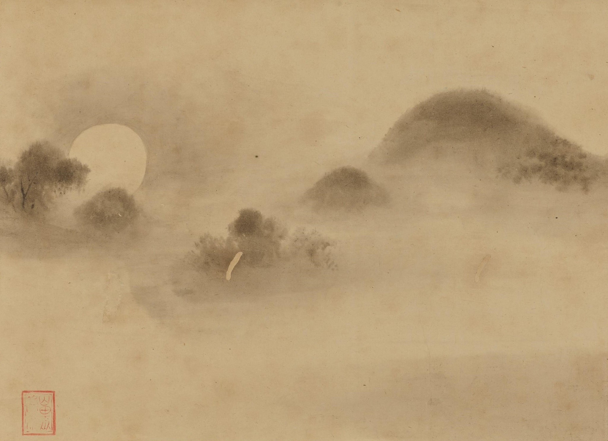 広々と広がる水と空そのどちらにも行き交いつつ、月は今も清らかに澄んでいる。