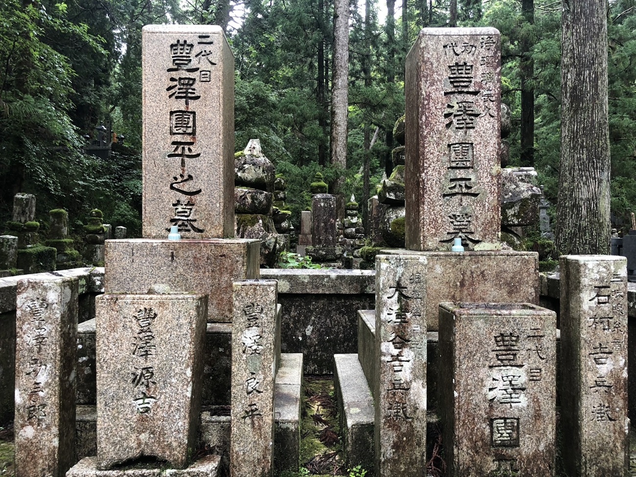 高野山に初代・二代目の團平のお墓が並んで建っています。ちなみに初代のお墓の左側の花立の「堀江座 座主 木津谷吉兵衛」というのが、織太夫稲荷※5を寄進した四代目竹本織太夫(代数外)です。