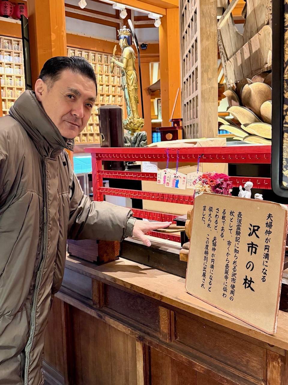 織太夫さんはお参りの時に御朱印帳を持参されていて、住職に御朱印をお願いされていました。見たことのない厚さに驚いていると、これは「神仏霊場参拝朱印帳」という関西地方を中心とした150か所の神仏の御朱印専用のものだと教えていただきました。「師匠が病に倒れた時に、公演で各地へ移動するため病院へ毎日通うことはできないから、せめて出来ることはないかと思って始めました」。咲太夫師匠は残念ながら令和6(2024)年にお亡くなりになられましたが、供養の思いも込めて、続けておられます。
