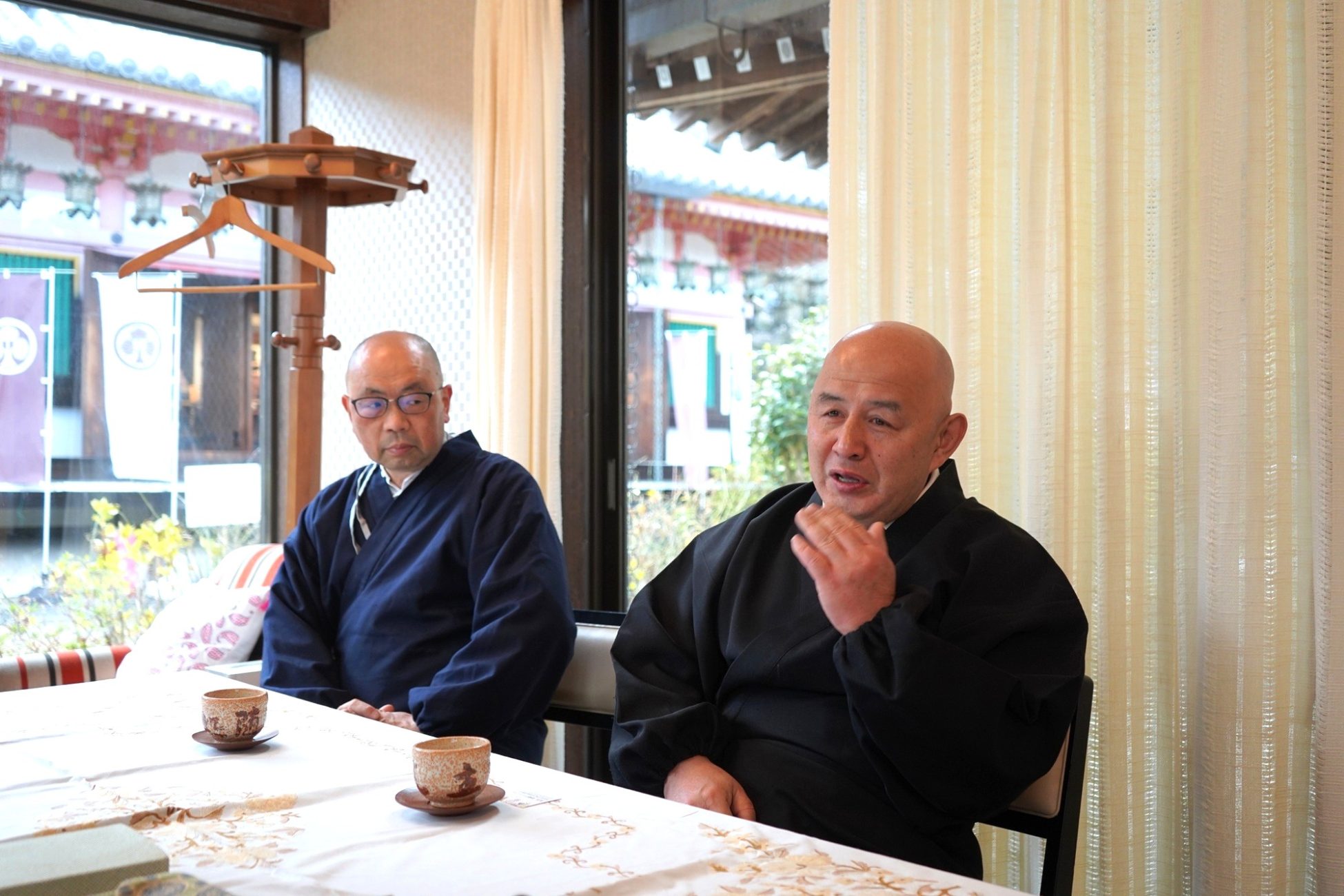 執事の喜多昭真(きたしょうしん)さんと住職の常磐勝範(ときわしょうはん)さんが、織太夫さんを出迎えてくださいました。