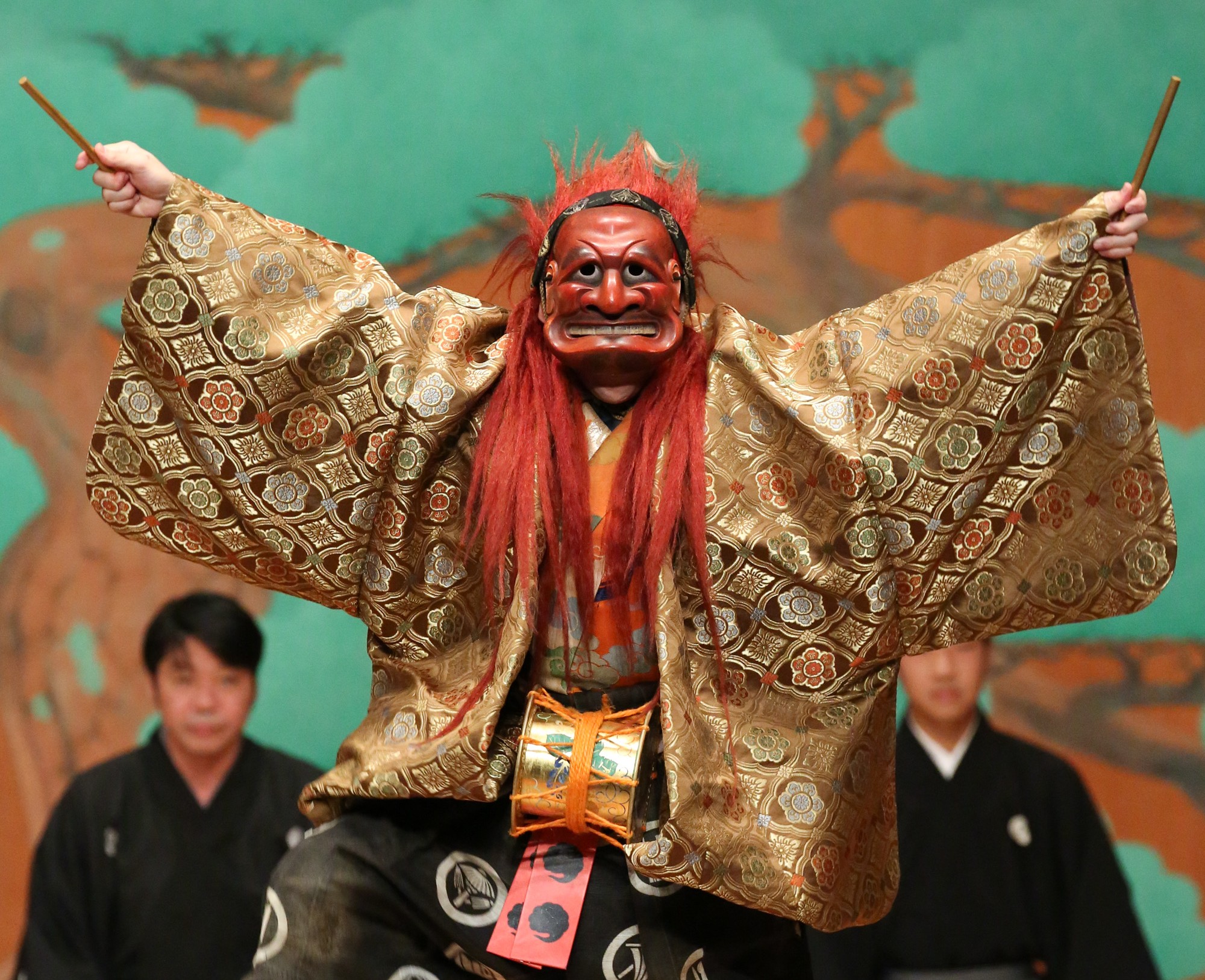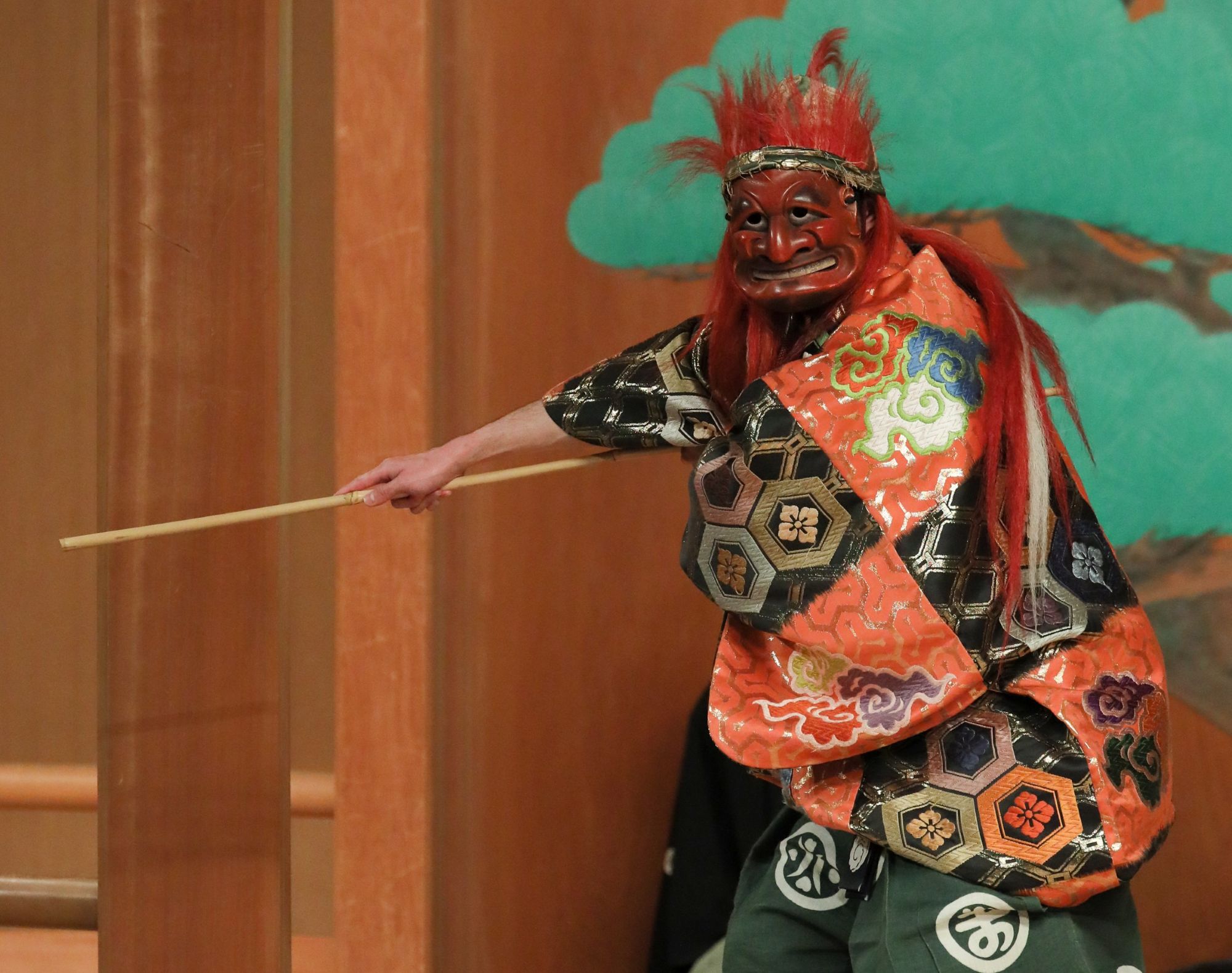 野村:動物や、今回のような雷様、大国、毘沙門など末社に至るまでの神様や精霊のような存在ですね。あとは鬼や、人間を超越した存在としての老人、女性の役などでも面を使います。狂言師が、自分の顔では表現しきれないものに対して面をつけるのです。