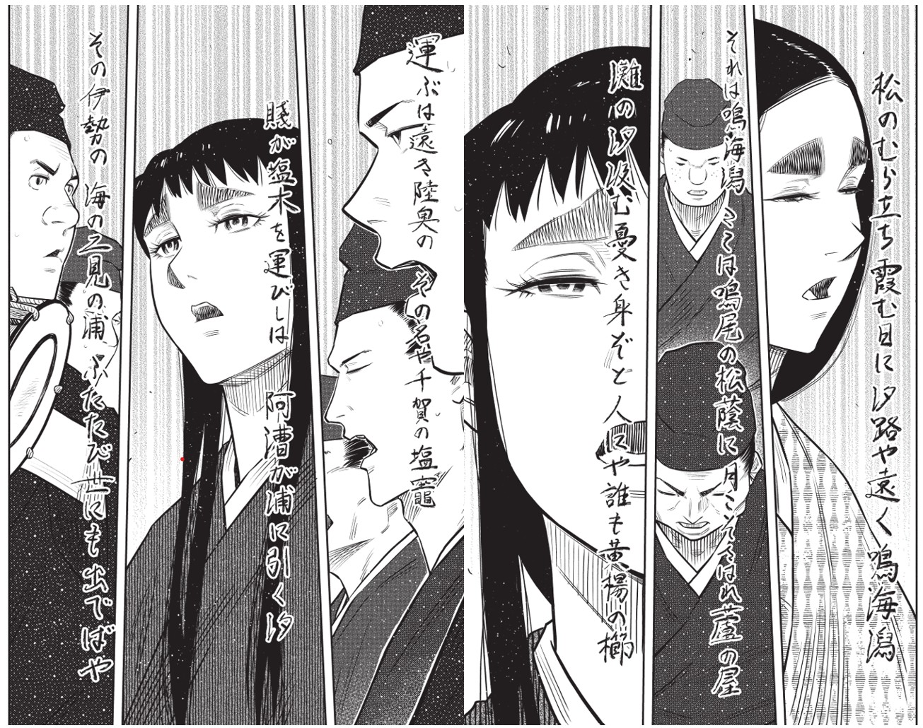 川口: 世阿弥の父である観阿弥も、田舎に行けば田舎の人たちが喜ぶ演目をやるような、大きな包容力を持っていました。最先端の尖った芸能だけでなく、人々を幸せにする「祝言性(しゅうげんせい)」も大切なのだと、少年時代の世阿弥が気づいて取り入れていく。その成長のプロセスが、漫画ではとても丁寧に描かれています。