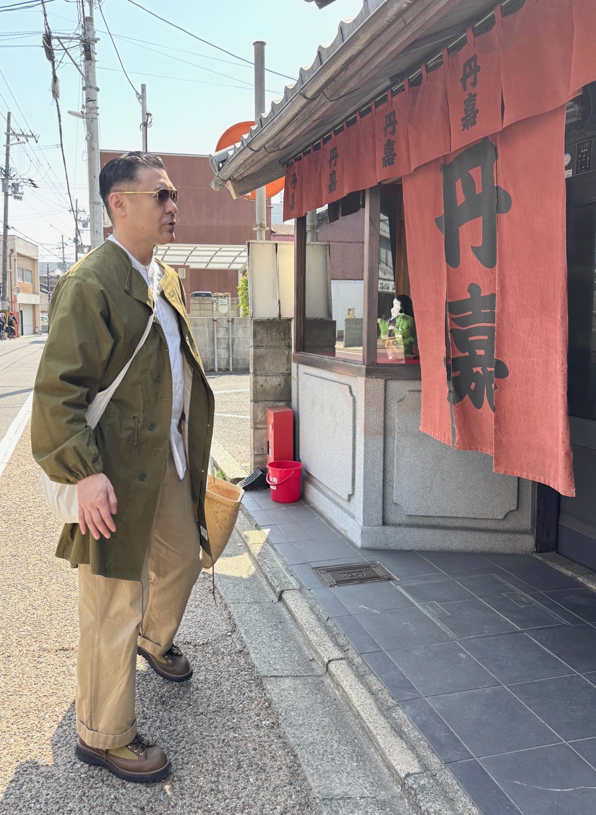 つまり太夫は、壮絶な「覚悟」をもってオリ(織)―ブカラーのガスプロテクティブコートに身を包み、ひたすら文楽の未来を想い、数々の危険をくぐり抜けてきたエプロンバッグとパイロットグラスを携え、まるで(攻撃ではなく救済のために)戦地を駆けめぐるごとく、今日も伏見稲荷大社へ降臨しているわけです。