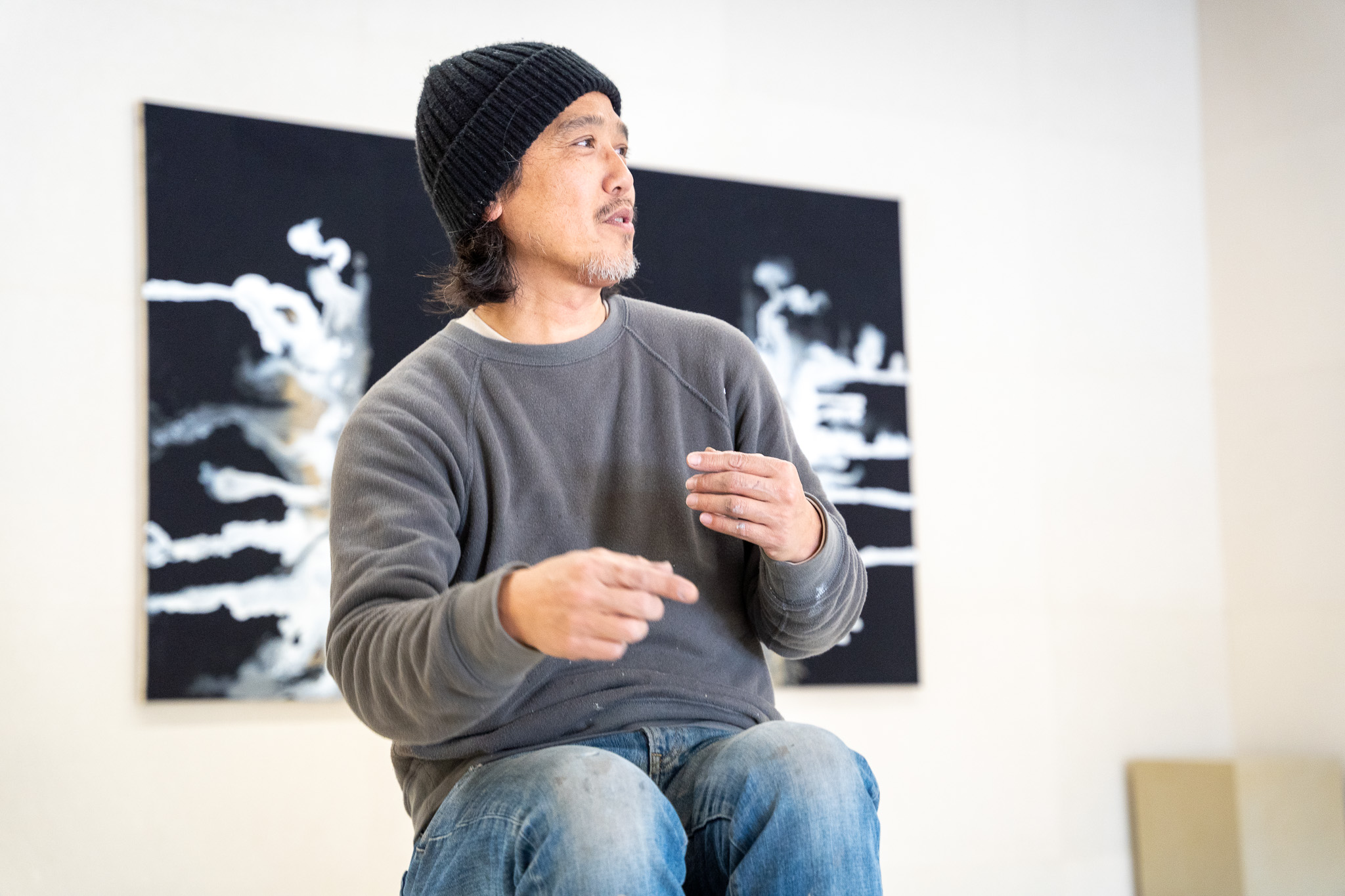 伊藤 私はこの作品がすごく印象的でした。先ほど伝統的な家屋をリノベーションしたご自宅をご案内頂いた際、大きな梁が走る天井の「闇」について語ってくださいましたよね。そのときの闇を思わせる作品だなと思いました。