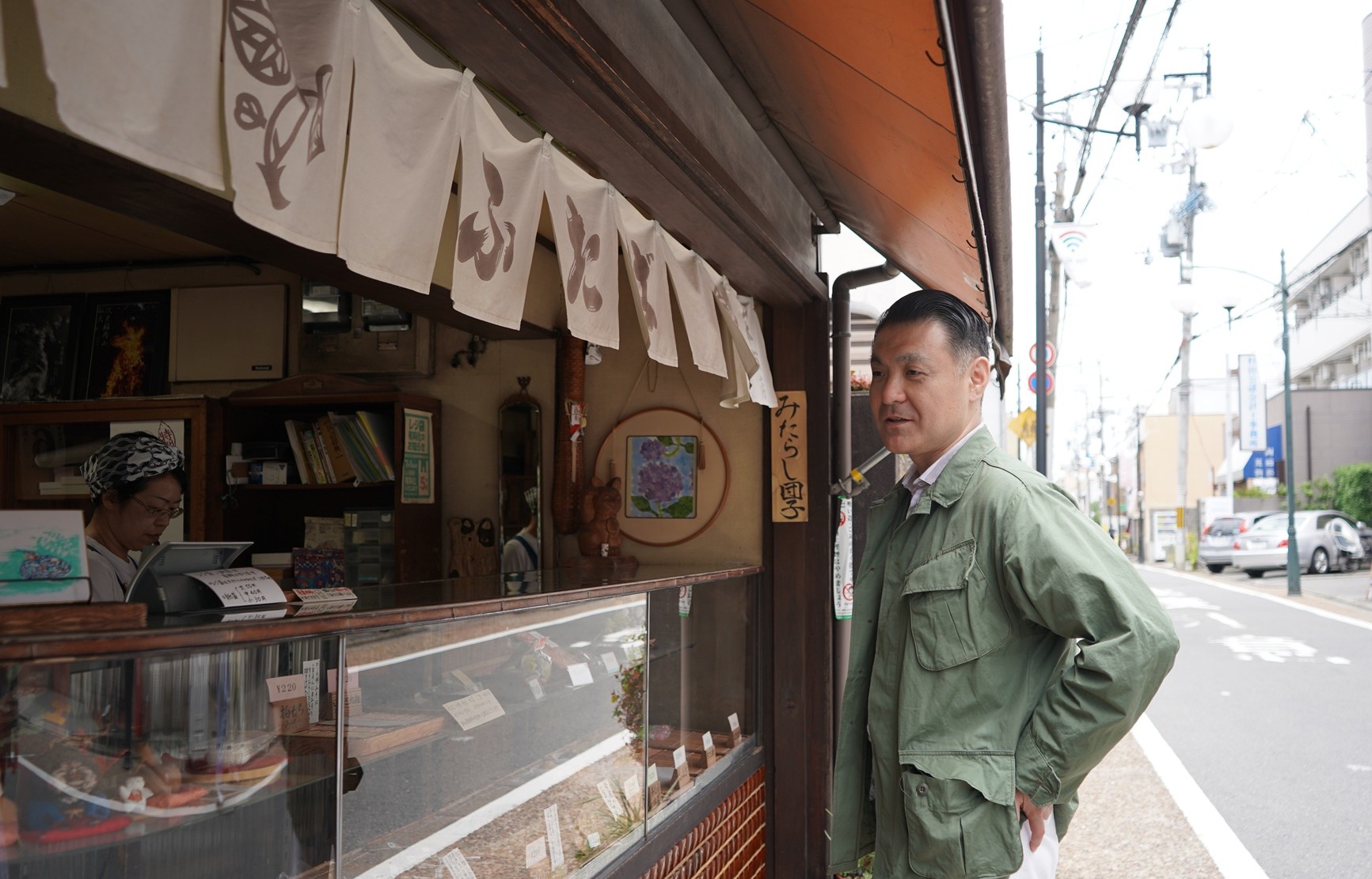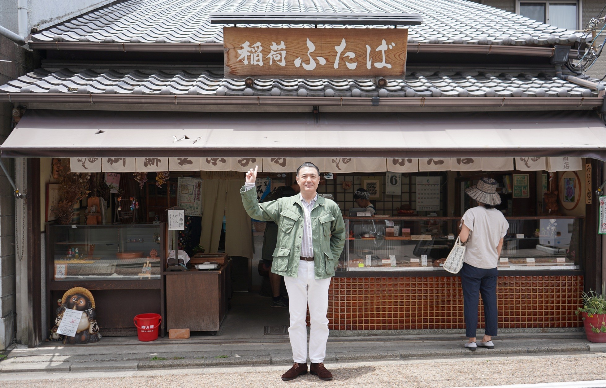お稽古や公演の合間に、よく和菓子を召し上がっておられる織太夫さん。伏見稲荷へ来た時に必ず立ち寄るのが、『稲荷ふたば』だそうです。こちらのお店は、出町柳の名店『出町ふたば』から暖簾分けをされて、現在創業約90年。純和風のレトロなたたずまいが、なんだかほっとくつろいだ気分にさせてくれます。