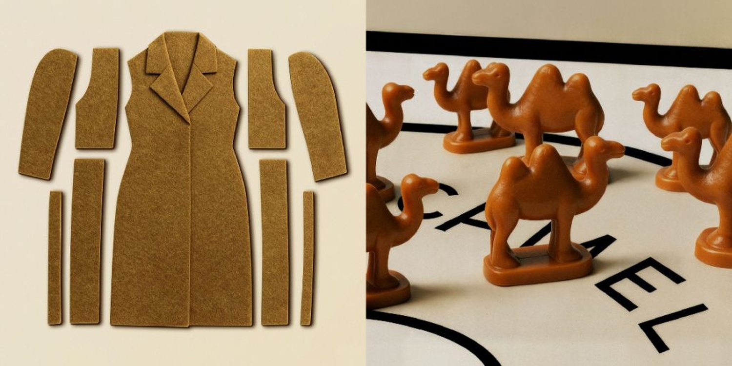 会場内には“キャメル”を象徴する雄大な砂漠をイメージした非日常的な空間が広がります。さらに「すごろく」を模したインタラクティブなインスタレーションも登場! キャメル素材が原毛から仕立てを経て製品になるまでの過程を体感しながら辿ることができます。