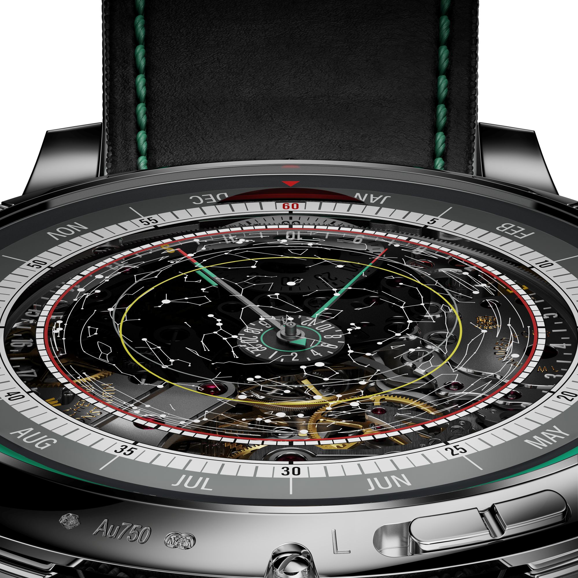 特筆すべきは、3つの時の読み取りを可能にしたキャリバー3655の革新性です。常用時、恒星時、太陽時という異なる時間概念を同時に表示し、精緻なメカニズムで天体の動きを表現しています。