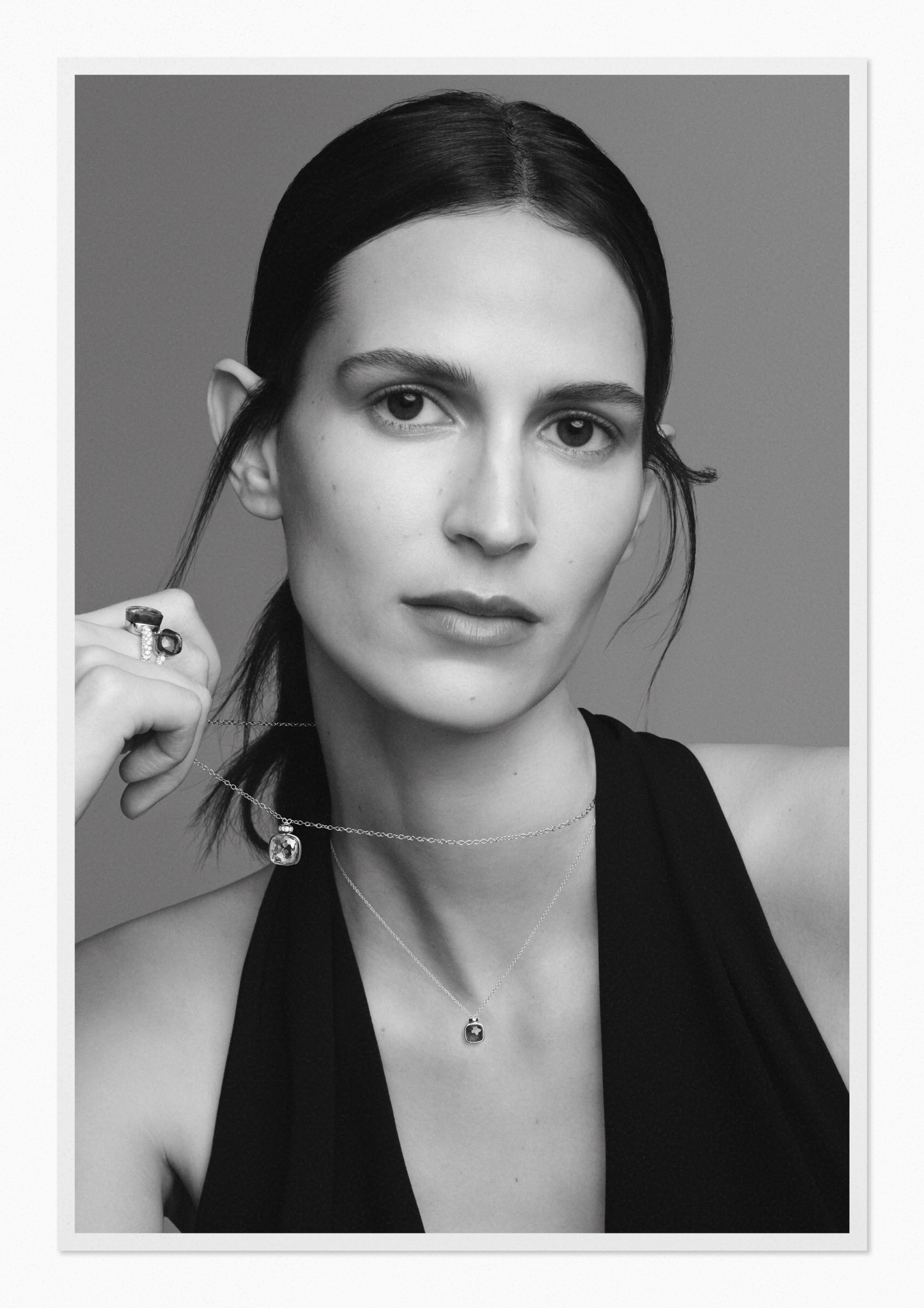 ブランドならではの特徴的なカッティングをミニサイズで表現した「ヌード ミニ」コレクションは、まさにポメラートの感性が凝縮された逸品。ローズゴールドにダイヤモンドがきらめくペンダント、エレガントなバングル、そしてイヤリング……。スカイブルートパーズやロンドンブルートパーズといった既存のアイテムとも美しく調和し、ホワイトダイヤモンドの輝きが全体に上品な奥行きを添える、新たな「ヌード」の世界を、ぜひその目で確かめてください。