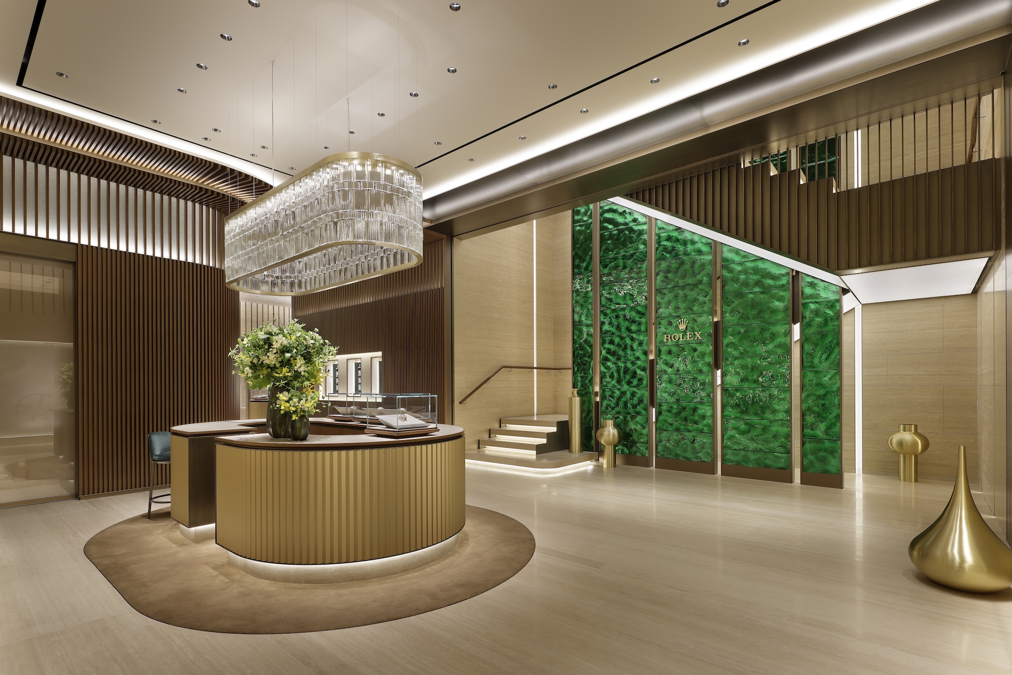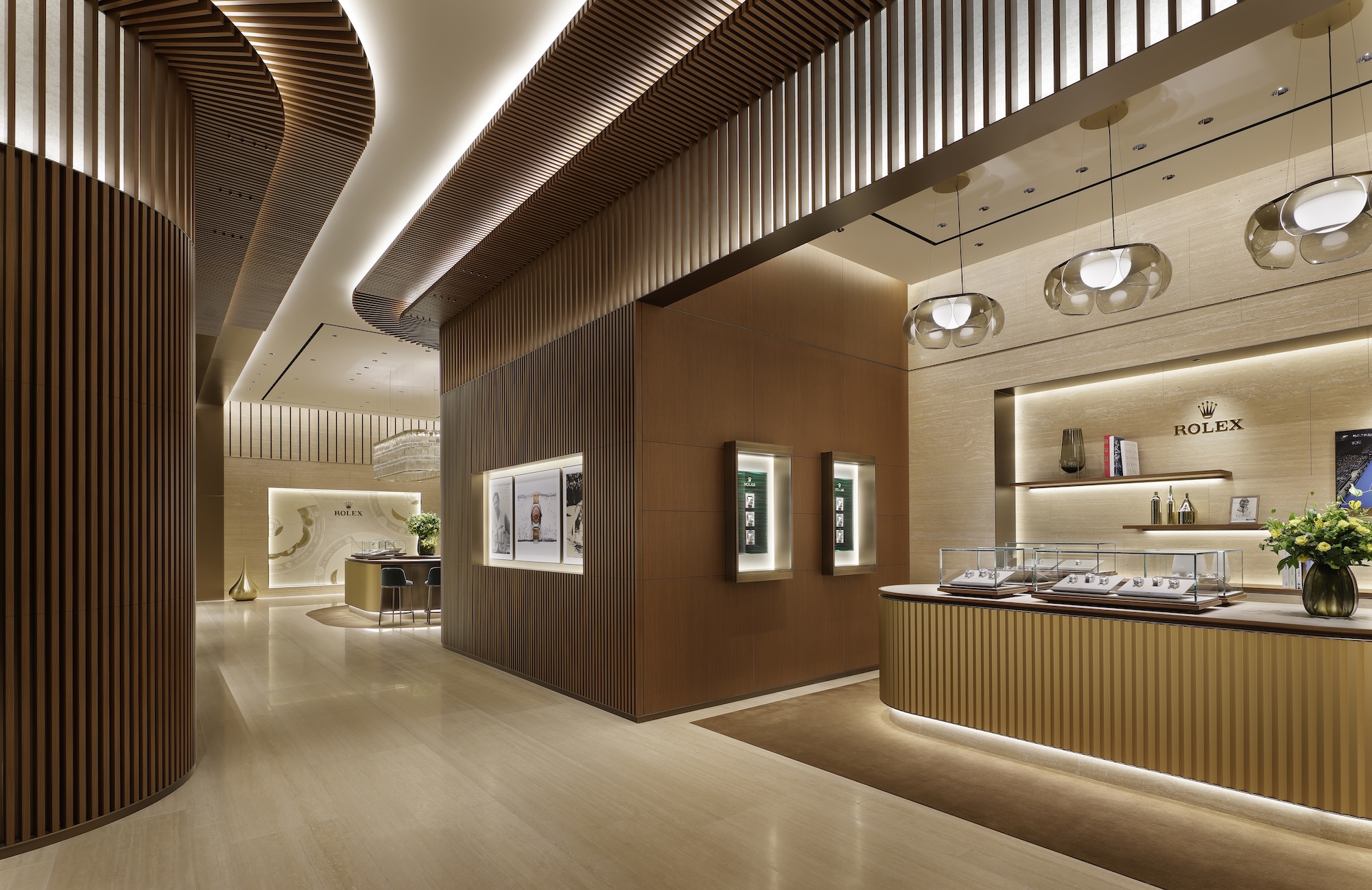 これらのインテリアはいずれもロレックス ブティックのためにデザインされたもの。ブランドのこだわりと世界観を体感させてくれる空間に仕上がっています。