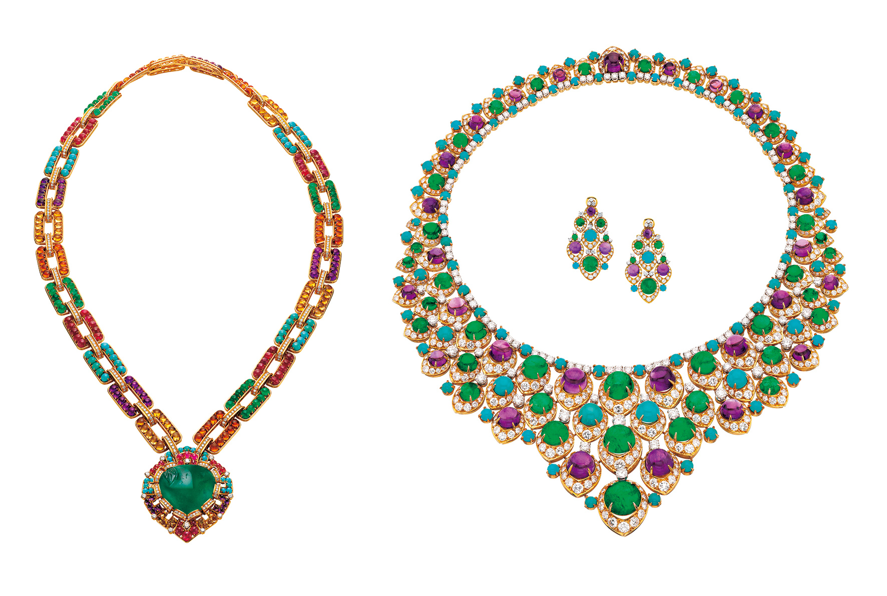 「『ビブ』ネックレス」ゴールド、プラチナ、エメラルド、アメシスト、ターコイズ、ダイヤモンド 1968年 リン・レブソン旧蔵 ブルガリ・ヘリテージ・コレクション