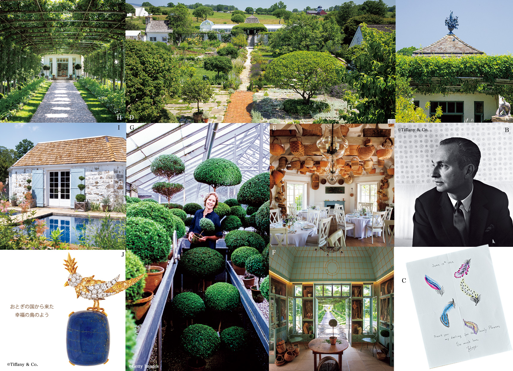 20世紀を代表するジュエリーデザイナー、ジャン・シュランバージェと、アメリカ社交界の名高い篤志家で園芸家、そして美術コレクターでもあったレイチェル・ランバート“バニー”メロン(以下バニー・メロン)。ふたりは親しみを込めて、互いを「バニー」「ジョニー」と呼び合い、四季折々の自然や庭の変化、制作中のジュエリーについて、ときにスケッチを添えて詩情豊かな手紙を交わす関係でした。