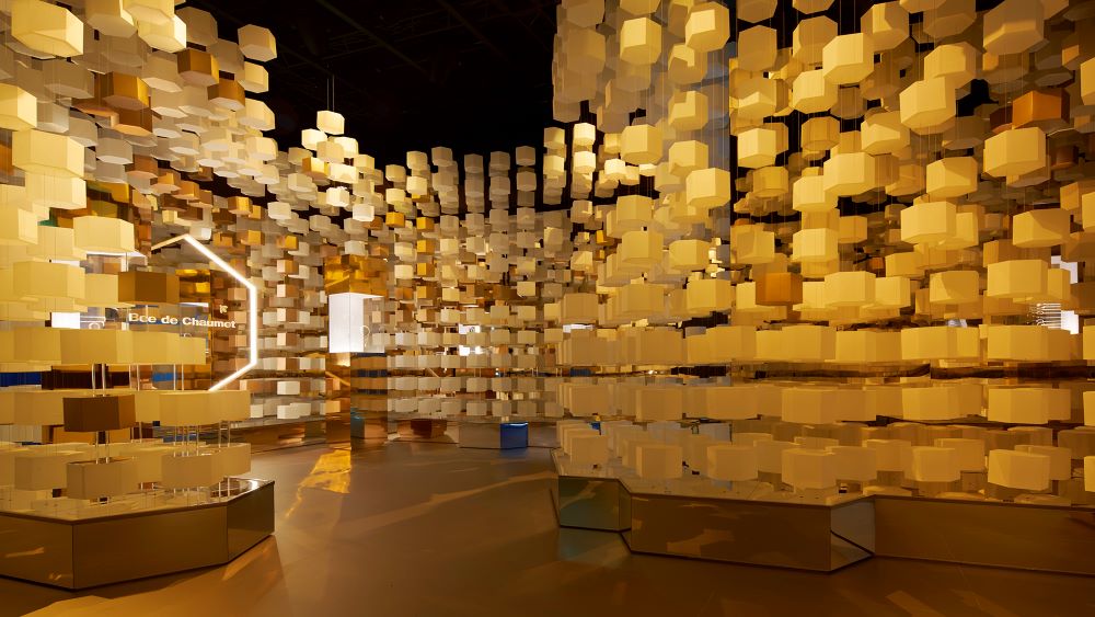 さらに、展示空間には和紙で作られたハニカムの装置が配され、日本の自然や美意識への敬意を示す演出として来場者を迎えます。伝統と革新、歴史と現代のクリエイションが呼応する空間は、目にするだけでなく心に深く刻まれる体験となるでしょう。