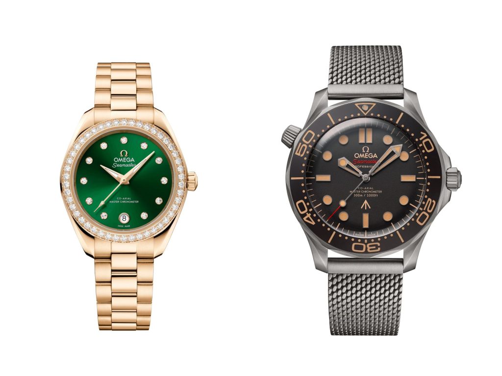 (右)「シーマスター ダイバー300M 007 エディション」チタン、トロピカルブラウン 1,595,000円