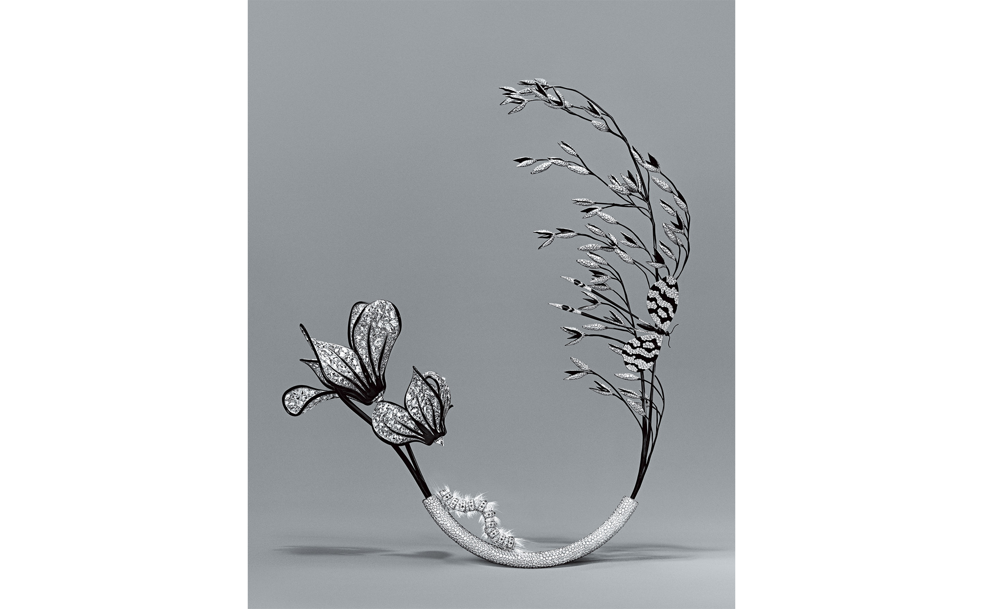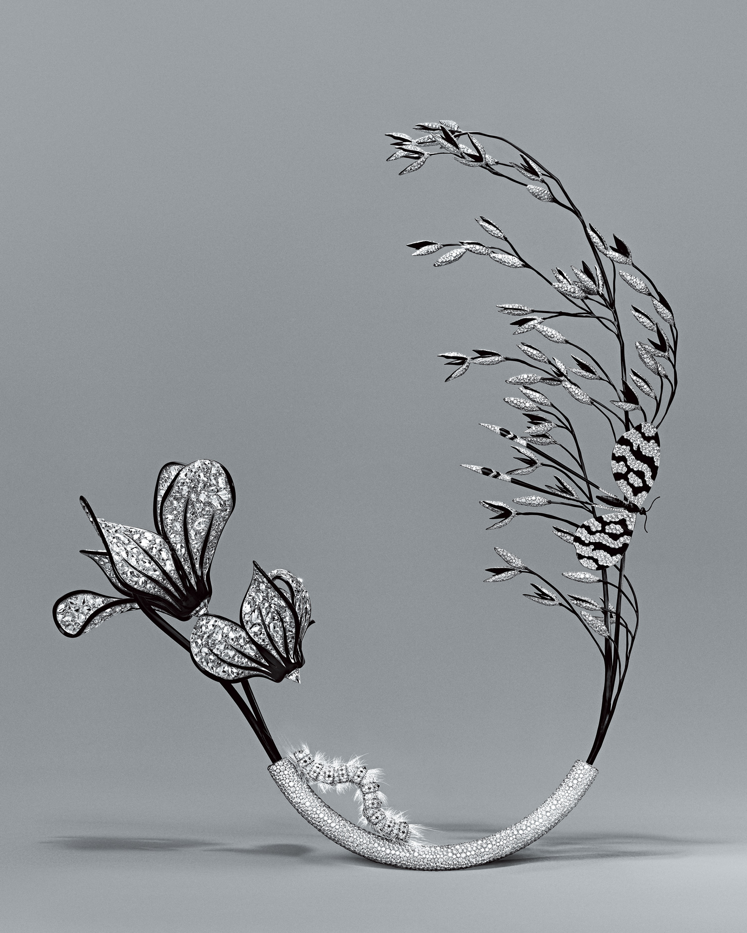 「自然の美しさが色褪せる前に、その一瞬を捉え、ハイジュエリー作品に閉じ込めたいと考えた」と語るクレール・ショワンヌは、延べ18,000時間以上におよぶ緻密な作業を経てコレクションを完成させた。