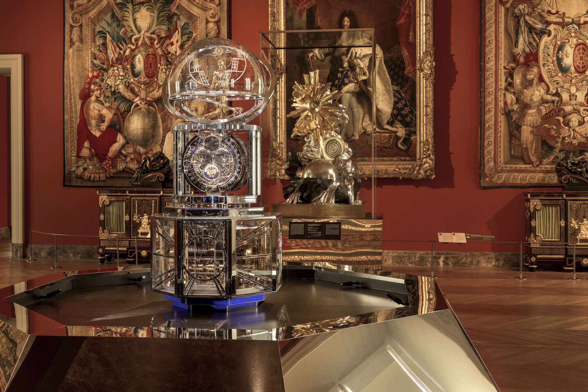 こうした歩みを背景に迎えたのが、2025年の270周年です。その節目を祝う場として選ばれたのがルーヴル美術館でした。そして、発表されたのが、270周年の集大成として製作された置時計《ラ・ケットゥ・デュ・タン(時の探求)》です。半球体のドーム、ロッククリスタルの時計キャビネット、台座からなるこの置時計は計時装置としての精密さに加え、高級時計製造の伝統、職人の卓越した技術、そしてオートマトンの機構美を融合させています。