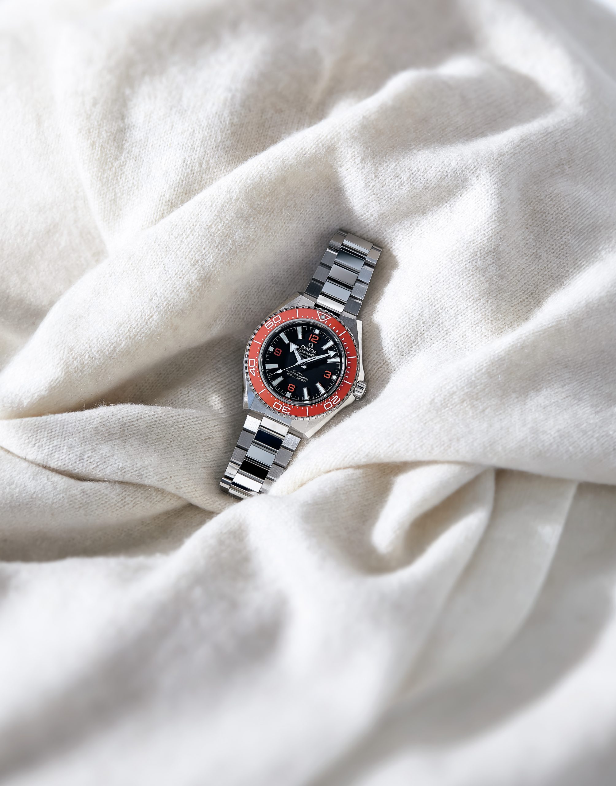 600mという高い防水性を誇る「プラネットオーシャン」がデザインを一新。ベゼルには製造が困難なオレンジセラミックが配され、同色のアラビア数字インデックスとともに洒脱なアクセントに。ケース厚も旧モデルより2.3㎜薄い13.79㎜になり装着感も向上。[ケース:SS、ケース径:42㎜、ブレスレット:SS、自動巻き]¥1,342,000(オメガ)