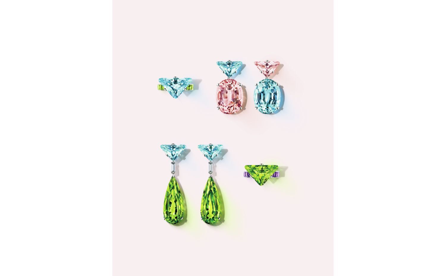 鮮明なアメシストやアクアマリン、モルガナイト、ペリドットなどのカラーストーンが予期せぬ対比と調和を奏でるファインジュエリー「クルール ヴィヴァント」。その全作品は「オーラ ブロックチェーン コンソーシアム」のプラットフォームに記録され、購入者はいつでも自身のジュエリーの真正性を確認することができる。また、ジェムストーンには独立した宝石鑑定機関によるグレーディング証明書を付属。「クルール ヴィヴァント」イヤリング〈上〉[モルガナイト×アクアマリン×WG]¥43,450,000・〈下〉[アクアマリン×ペリドット×ダイヤモンド×WG]¥74,800,000・リング〈上〉[アクアマリン×ペリドット×WG]¥12,650,000・〈下〉[ペリドット×アメシスト×WG]¥8,910,000(プラダ クライアントサービス〈プラダ〉)※すべてオーダー予定価格