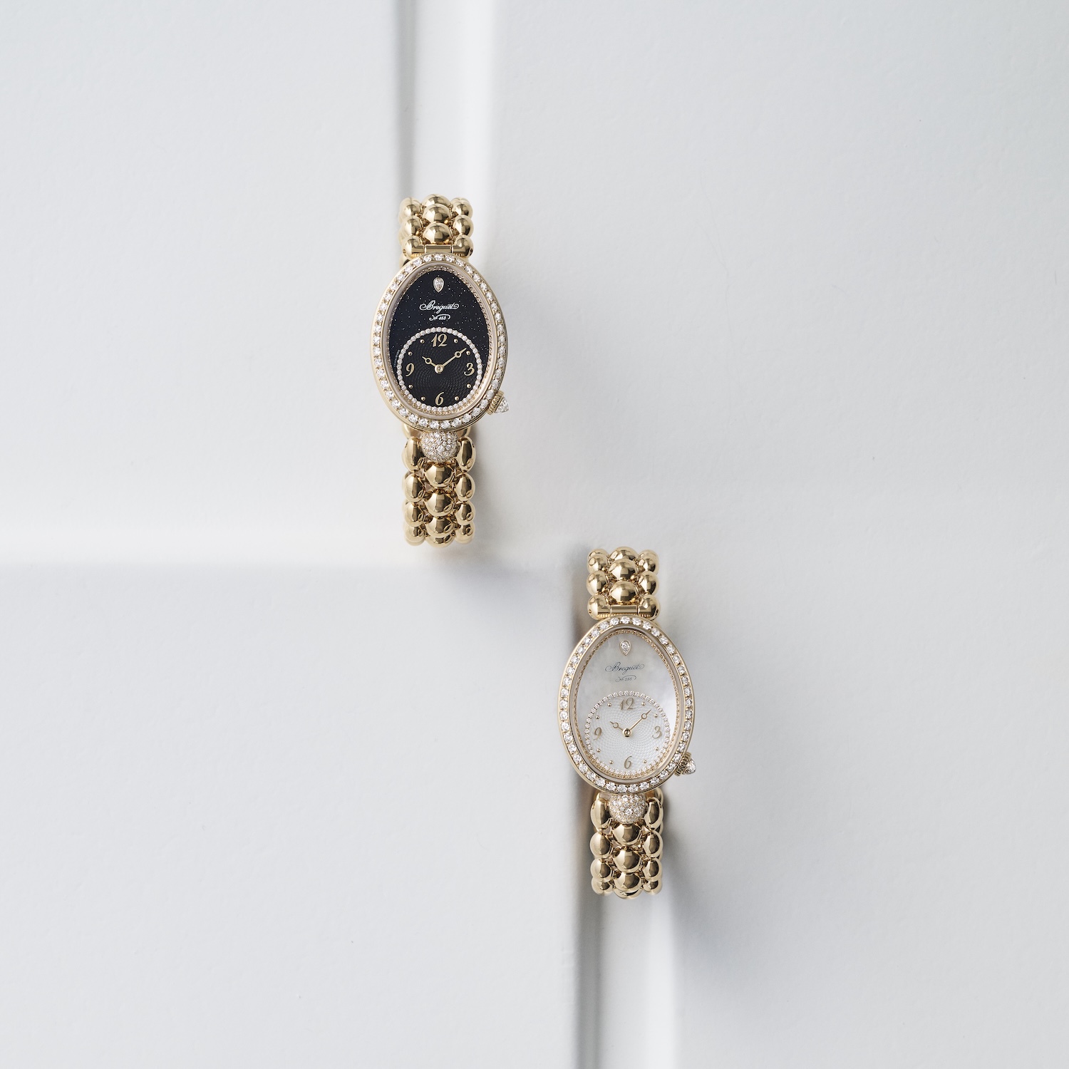 1775年の創業以来、多くのロイヤルファミリーから愛されてきた「ブレゲ」。なかでも「レーヌ・ドゥ・ナープル」は、ナポリ王妃のカロリーヌ・ミュラのために製作された卵型のエレガントな時計から着想を得たコレクションです。ブランドの歴史と共に受け継がれてきたなタイムピースは、250周年を迎えた昨年、日常のあらゆるシーンで纏えるモダンな新作「レーヌ・ドゥ・ナープル 8925」へと進化しました。ブラックのアベンチュリンや白蝶貝などを用いた、いずれも昼夜問わずに愛用できるモダニティが漂うデザインが、アクティブな現代女性の心に響きます。