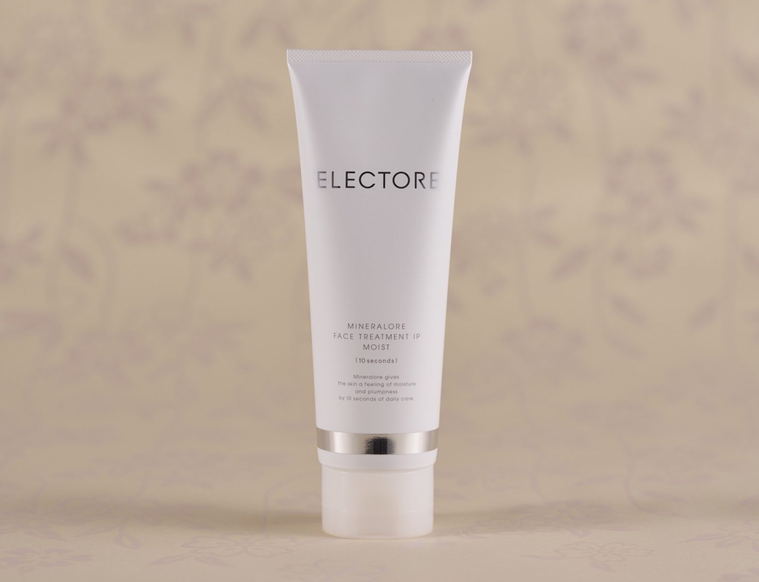桜柄の唐紙に置いた化粧品は、『エレクトーレ ミネラルオーレ フェイストリートメント IP モイスト』(100g/5,995円税込)。これは洗い流すお顔のトリートメントです。たった10秒で3つの効果「古い角質を溜めない」、「キメ・水分バランスを整える」、「うるおい・ハリ・ツヤを保つ」を叶えてくれます。是非、バスタブの中でお薦めしたいケアです。2024年5月のリニューアルで美容成分をさらに追加し、使用後の確かなうるおいやハリ弾力肌をより実感できるるようになり、テクスチャーも心地よくなめらかに進化しています。このフェイストリートメントに高配合されている独自成分「ミネラルオーレ※」は、岐阜県奥美濃地方でのみ採掘される天然鉱石をクレイ状にする過程で独自技術でマイナス電位を保持させたもの。ミネラルオーレのほか、厳選された美容成分も配合されています。
