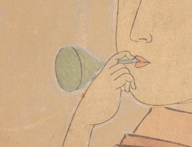 歌麿の『ポッピンを吹く娘』はその最たるもの。若く美しい町娘の絵に憧れた市井(しせい)の女性たちは、われ先に真似をしていたといいます。