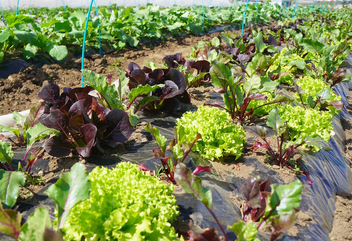 ②ソルガムや米ぬか、マリーゴールドなどを加えた土は、緑肥となり、野菜たちに栄養を届けます。このミネラル豊富な自然由来の土で、野菜はゆっくりと自分のペースで育ちます。土のチカラが野菜たちの味を決めるのです。収穫は野菜が「今だよ」と教えてくれる旬のタイミングでぎゅっと詰まった美味しさを味わえます。