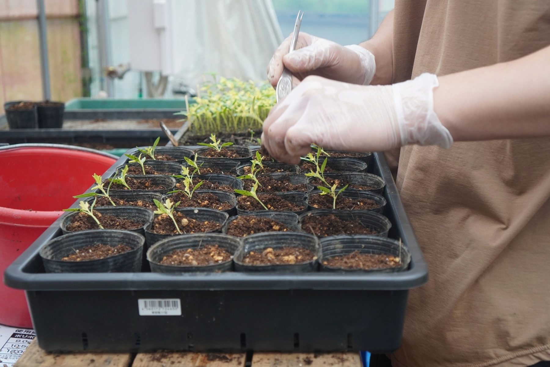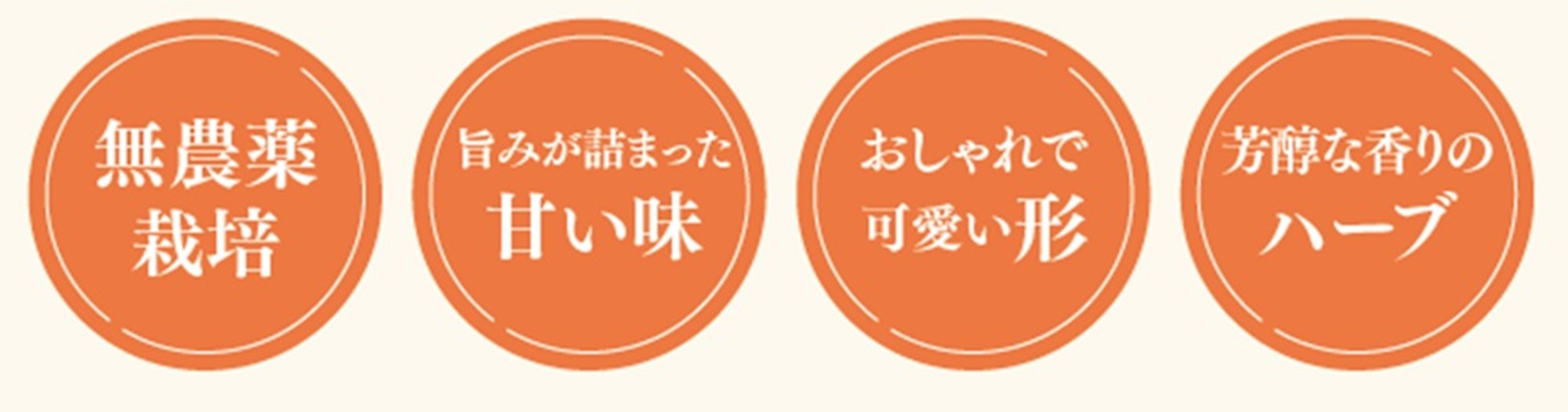 ①農薬を使用せず、自然の力を借りて育てています。ハーブや花と一緒に植える「共生農法」により、虫が寄り付きにくくなり、野菜たちは健やかに成長します。毎日の見守りと網を張るなどの丁寧な対策で、安心して食べられる美味しさをお届けできます。
