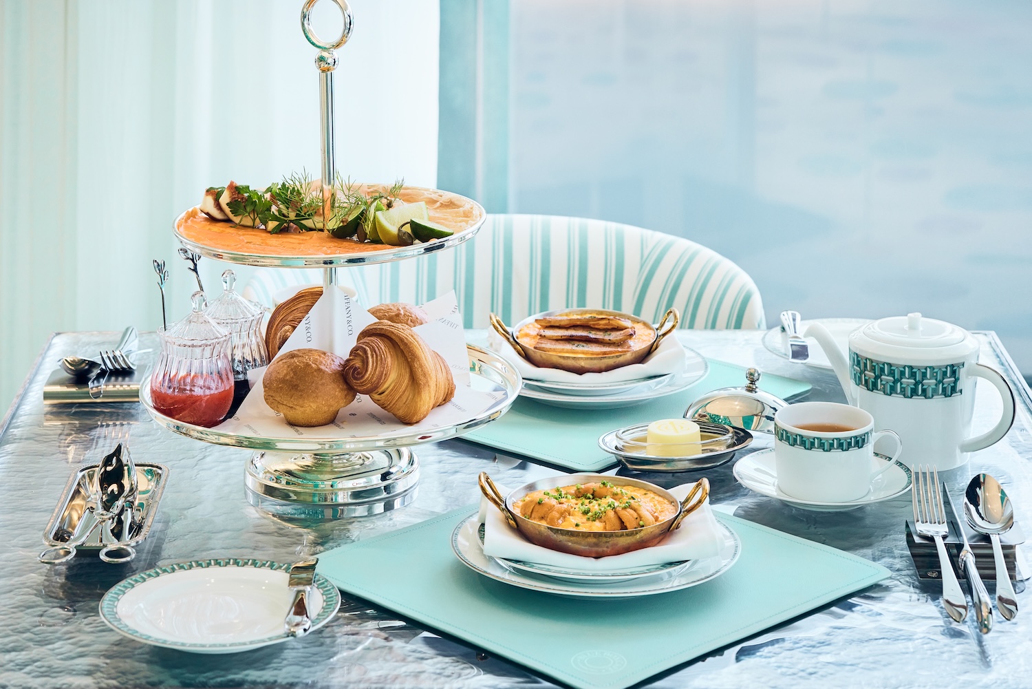 メニューは、ブレックファースト、アフタヌーンティー、アラカルトが中心。なかでも名画『ティファニーで朝食を』を彷彿とさせる「Breakfast at Tiffany’s」(¥8,500/税込サ別)は、ニューヨークの正統派の朝食スタイルに、日本の食文化を組み合わせた、この店ならではの逸品です。