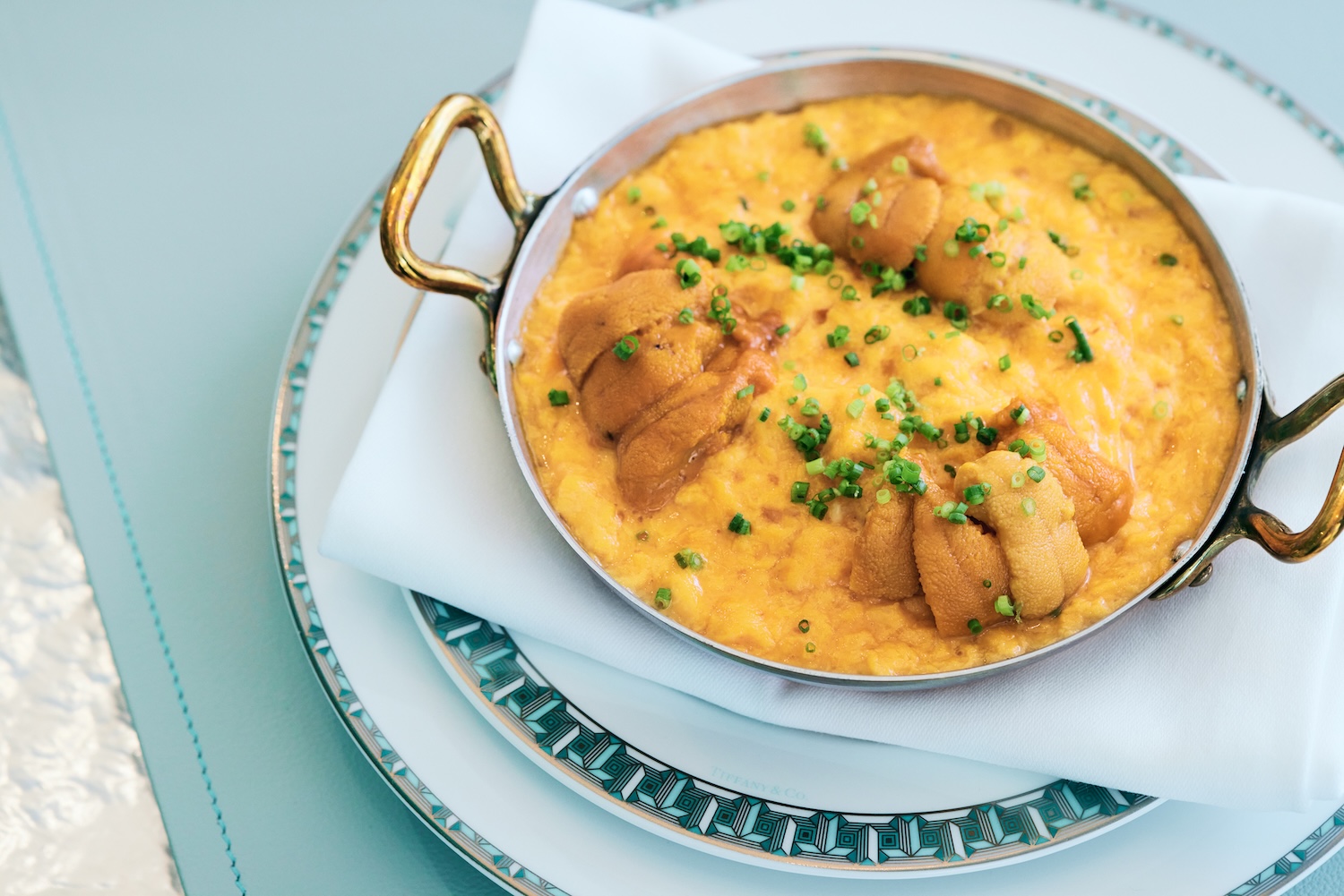 「プロジェクトがスタートしたのは約2年前なのですが、それまで“ティファニー”には、人気の高いジュエラーという認識でした。ただ実際にニューヨーク本店を訪れ、ハイジュエリーコレクションを拝見したりなど、ブランドの真髄に触れていくなかで、老舗としての伝統を守りながら、同時に革新的なことも取り入れていることを知り、感銘を受けたんです。私が料理で表現したいと、常に思っている部分と通じるなと」と、庄司さん。ジュエリーと料理の親和性の高さも感じるそうです。