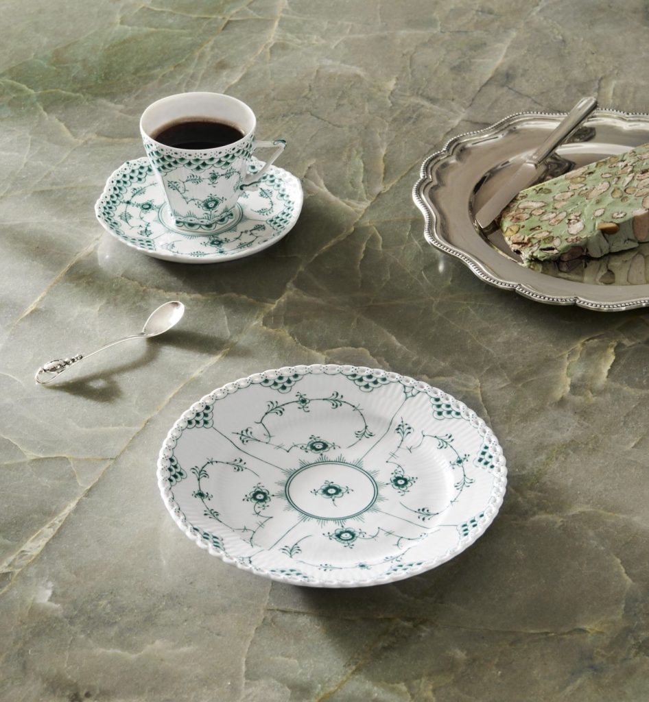 複雑な工程と緻密な手仕事を重ねることで生まれるエメラルドグリーンフルーテッド フルレースは、ロイヤル コペンハーゲンのクラフツマンシップを象徴する、極めて完成度の高いコレクションといえるでしょう。