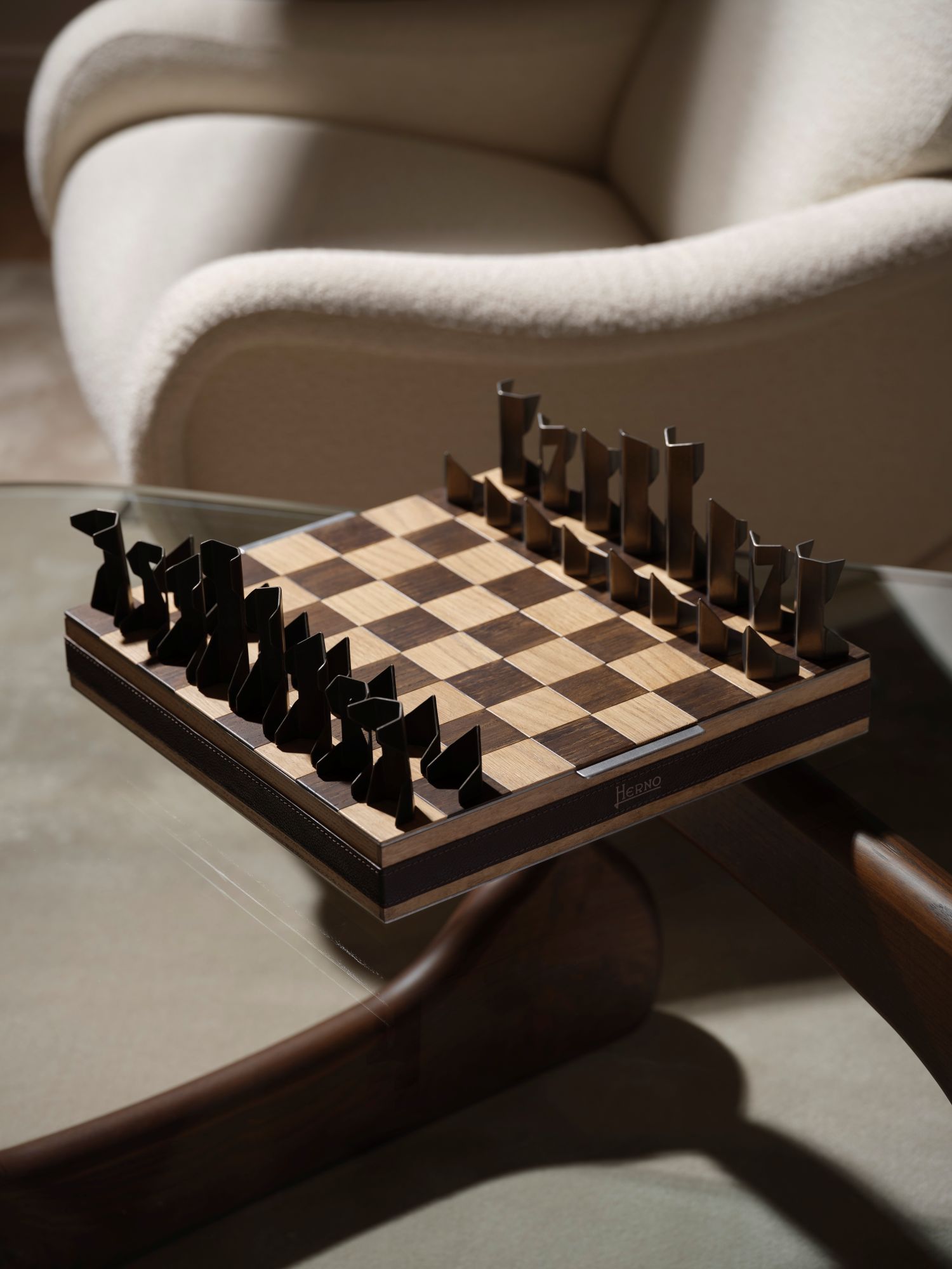 ホリデーシーズンにふさわしい逸品として、チェスセットやトランプボックスが登場。木、革、スチールで構成された駒やケースで彩られた、ヘルノ初のゲームアイテムです。素材の美しさに遊び心を添え、家族や仲間と集う時間をより特別で親密に演出します。